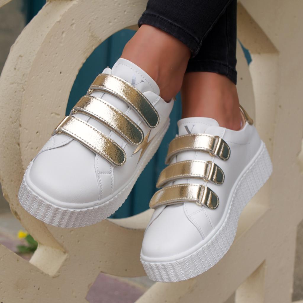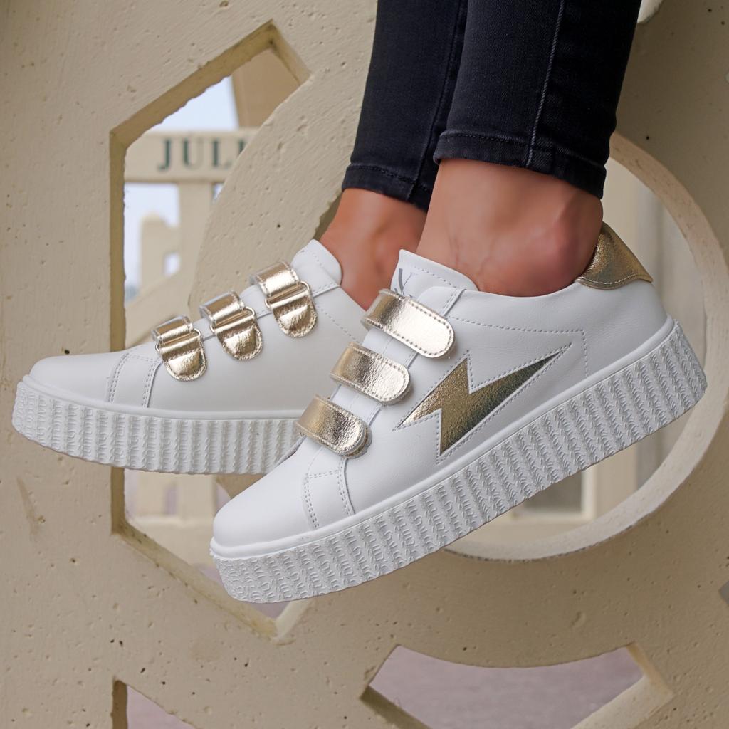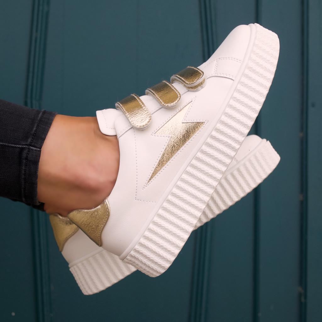 Baskets éclair Vanessa Wu Marilou blanc et champagne à scratchs