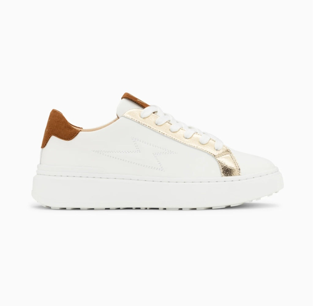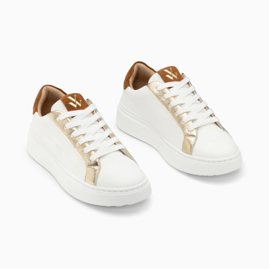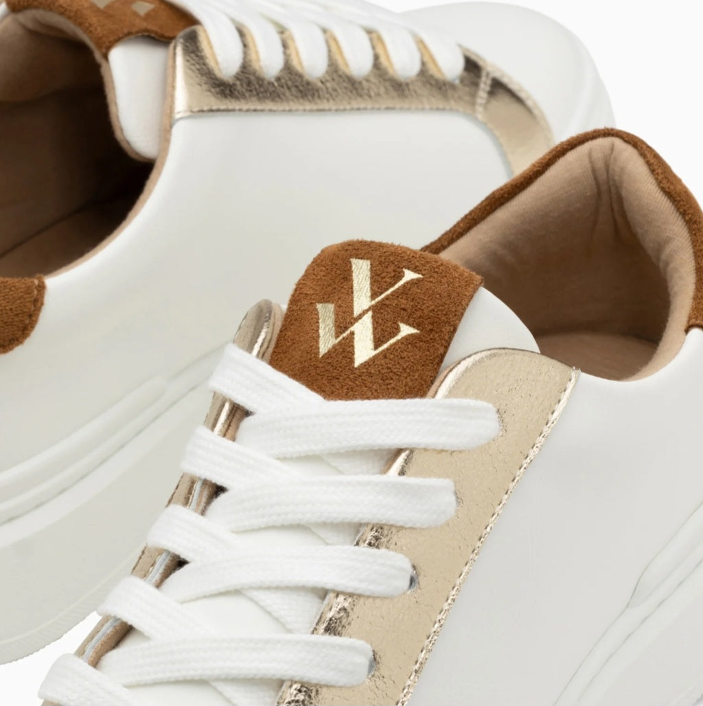 Baskets éclair Vanessa Wu Romane blanc et camel à lacets