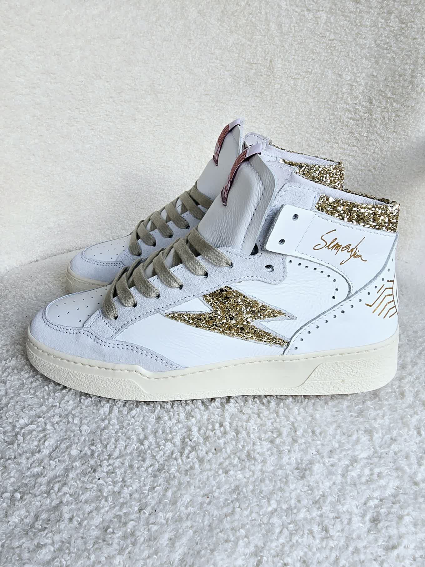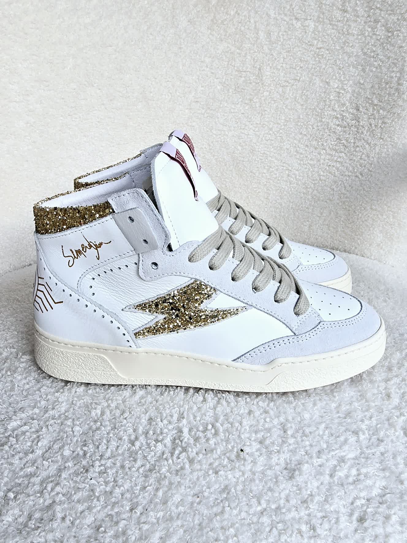 La SMR Braga B690 est la basket idéale pour ceux qui recherchent un design simple et élégant. Avec ses détails glitter doré et ses lacets crème, ce modèle est un choix parfait pour une touche de classe facile à porter.