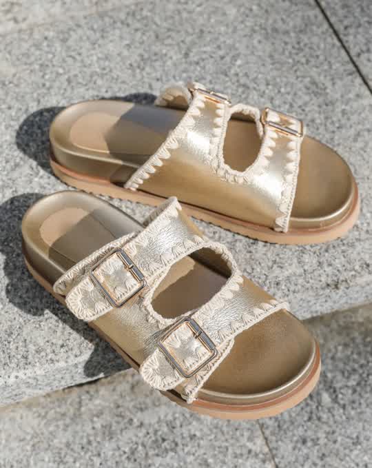 L'élégance rencontre le confort avec cette mule à double bride ! Sa semelle ultra-légère de 2,5 cm d’épaisseur vous offre une marche agréable tout au long de la journée. Le détail brodé en couture et la semelle intérieure dorée apportent une finition magnifique et moderne, idéale pour sublimer vos tenues estivales.