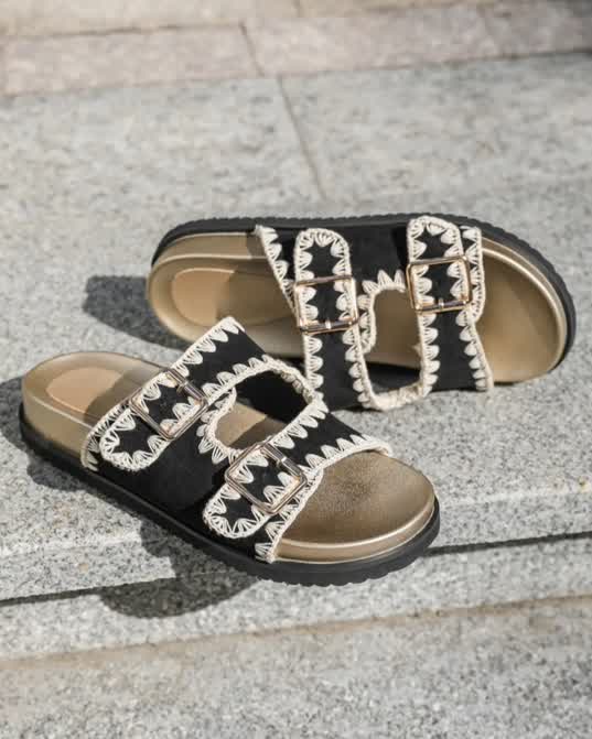 L'élégance rencontre le confort avec cette mule à double bride ! Sa semelle ultra-légère de 2,5 cm d’épaisseur vous offre une marche agréable tout au long de la journée. Le détail brodé en couture et la semelle intérieure dorée apportent une finition magnifique et moderne, idéale pour sublimer vos tenues estivales.