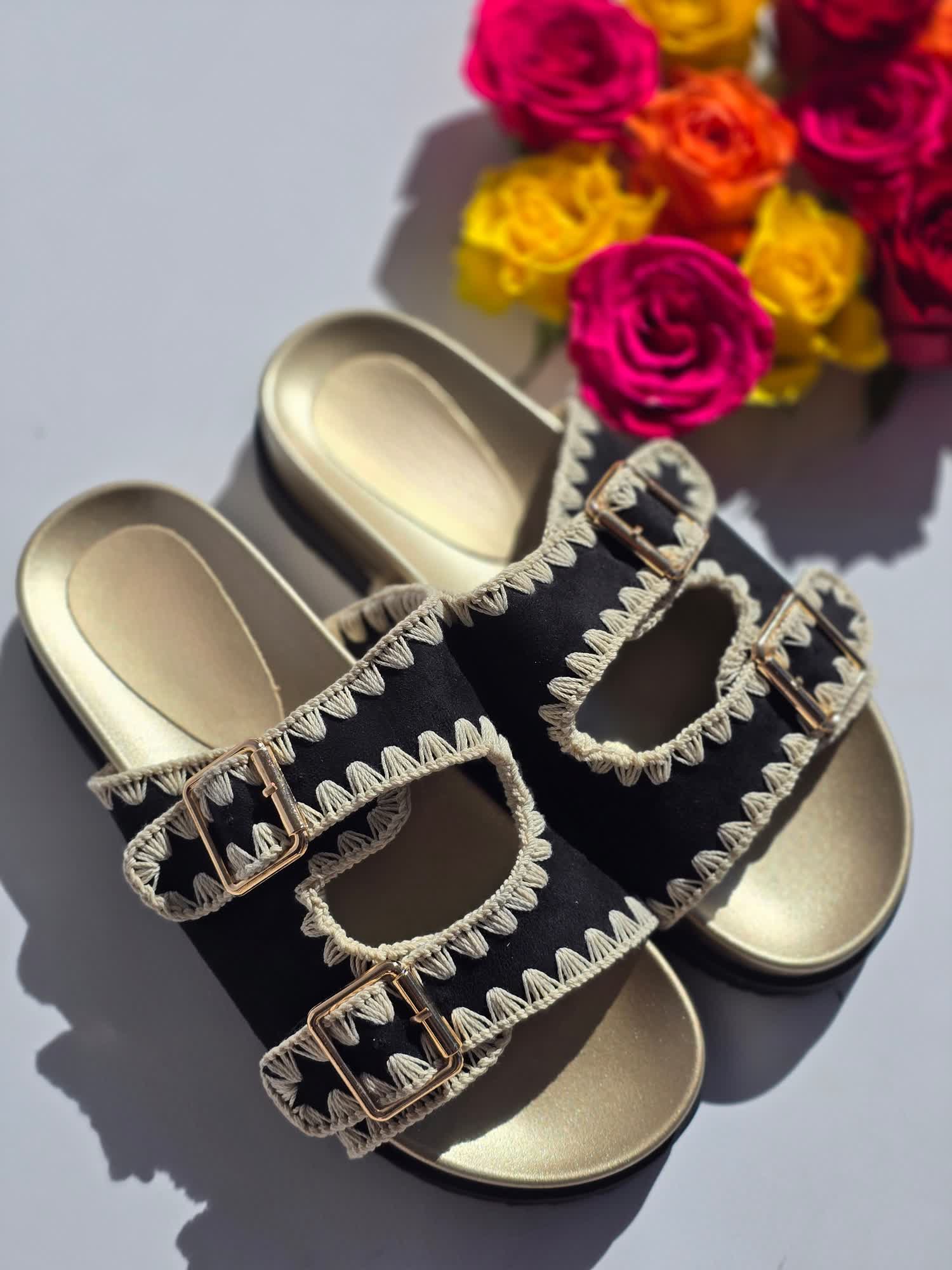 Mule Double Bride Brodée – Élégance et Confort au Quotidien
