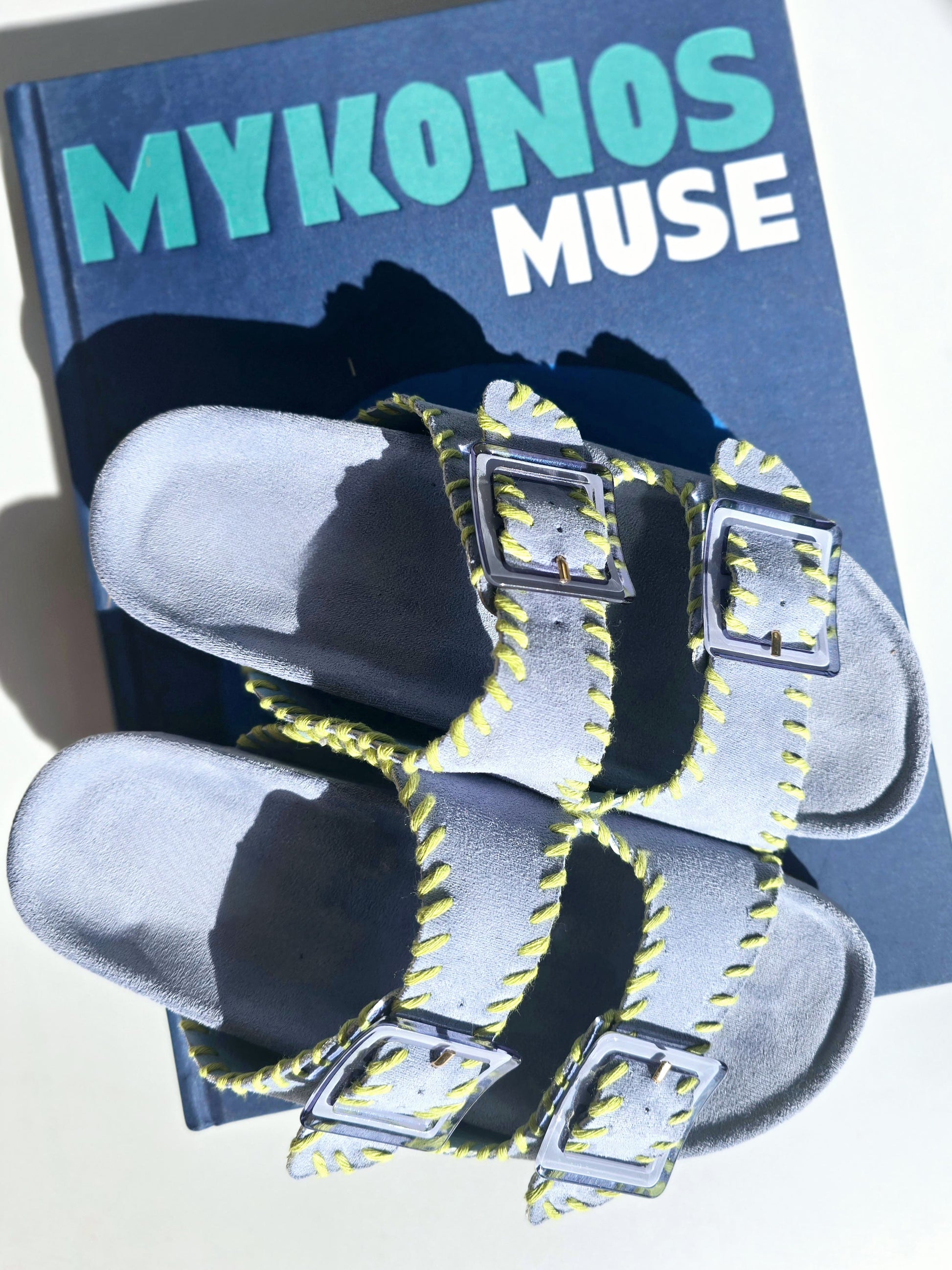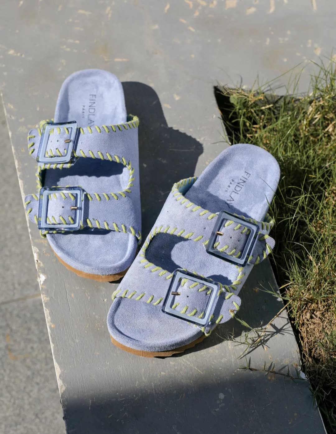 Mules doubles brides coutures Bleu ciel