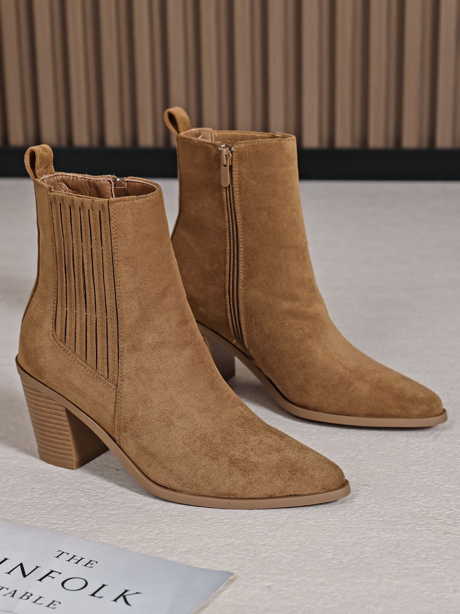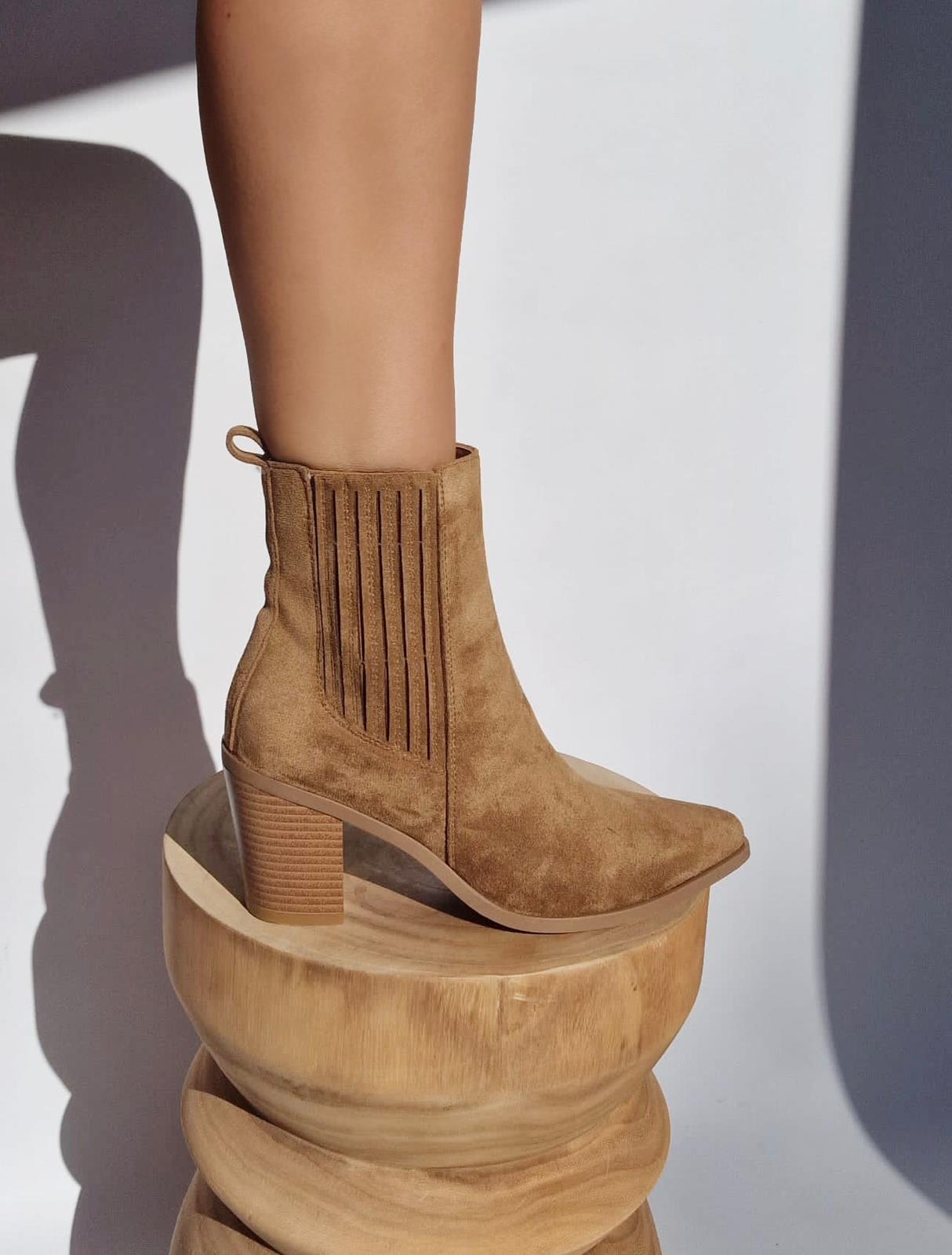 Ces bottines en suédine effet daim sont le parfait équilibre entre élégance et confort.