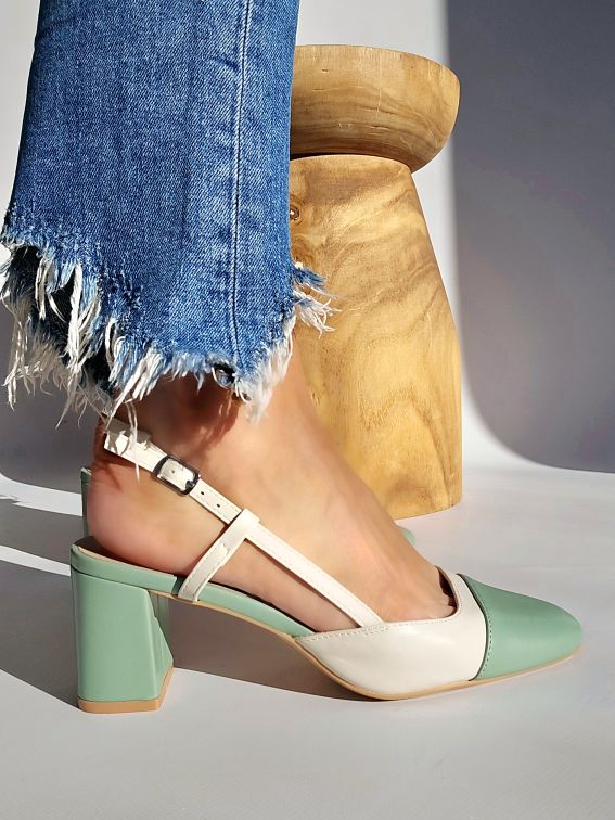 Escarpins slingbacks bicolore Vert pastel