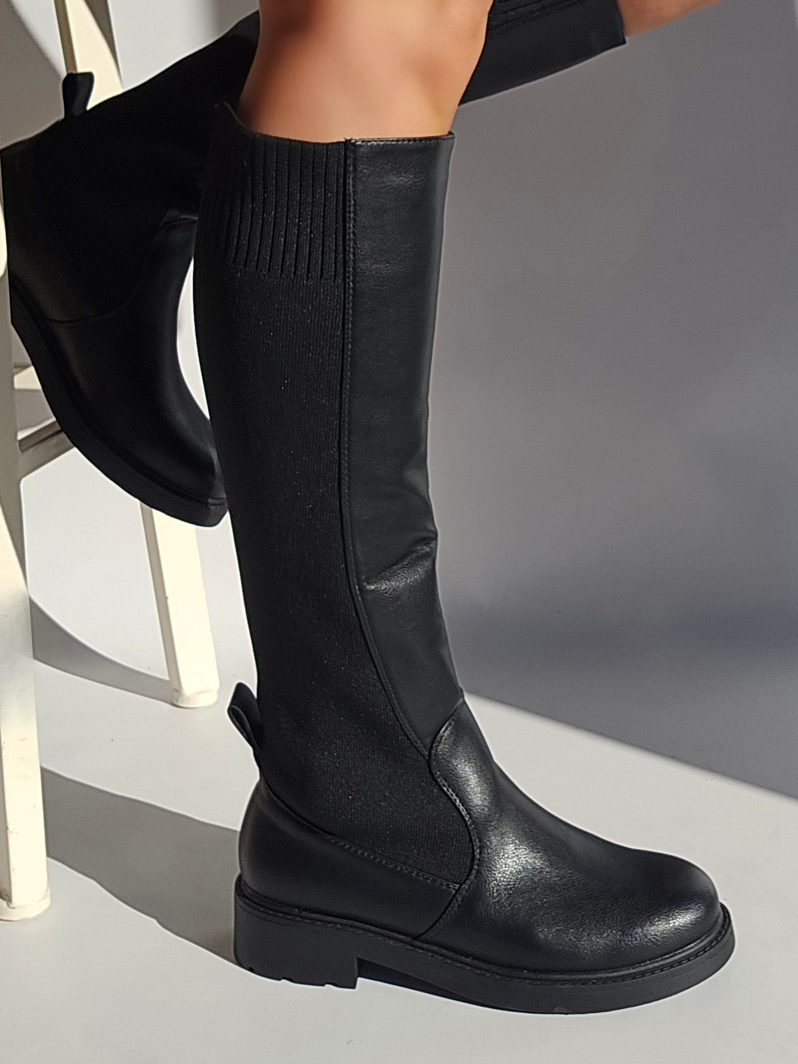 Black elastic riding boots
