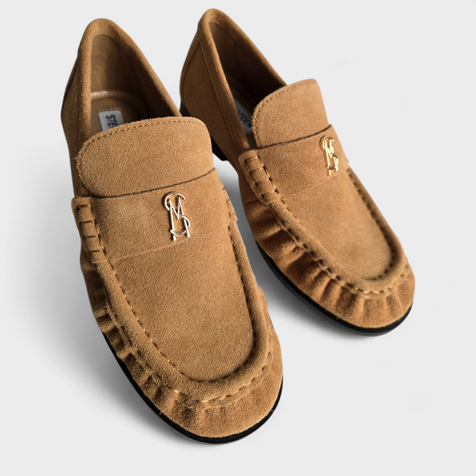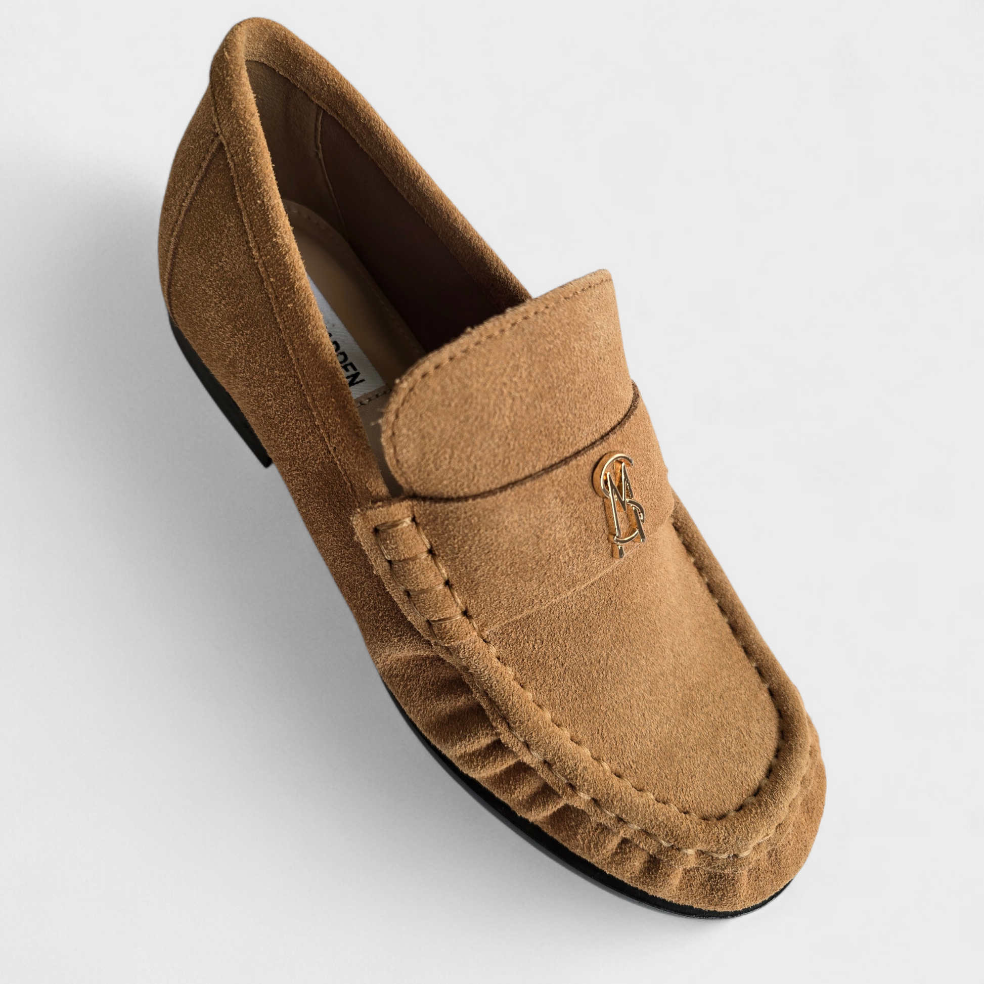 Un mocassin en daim souple signé Steve Madden, élégant et facile à porter au quotidien.