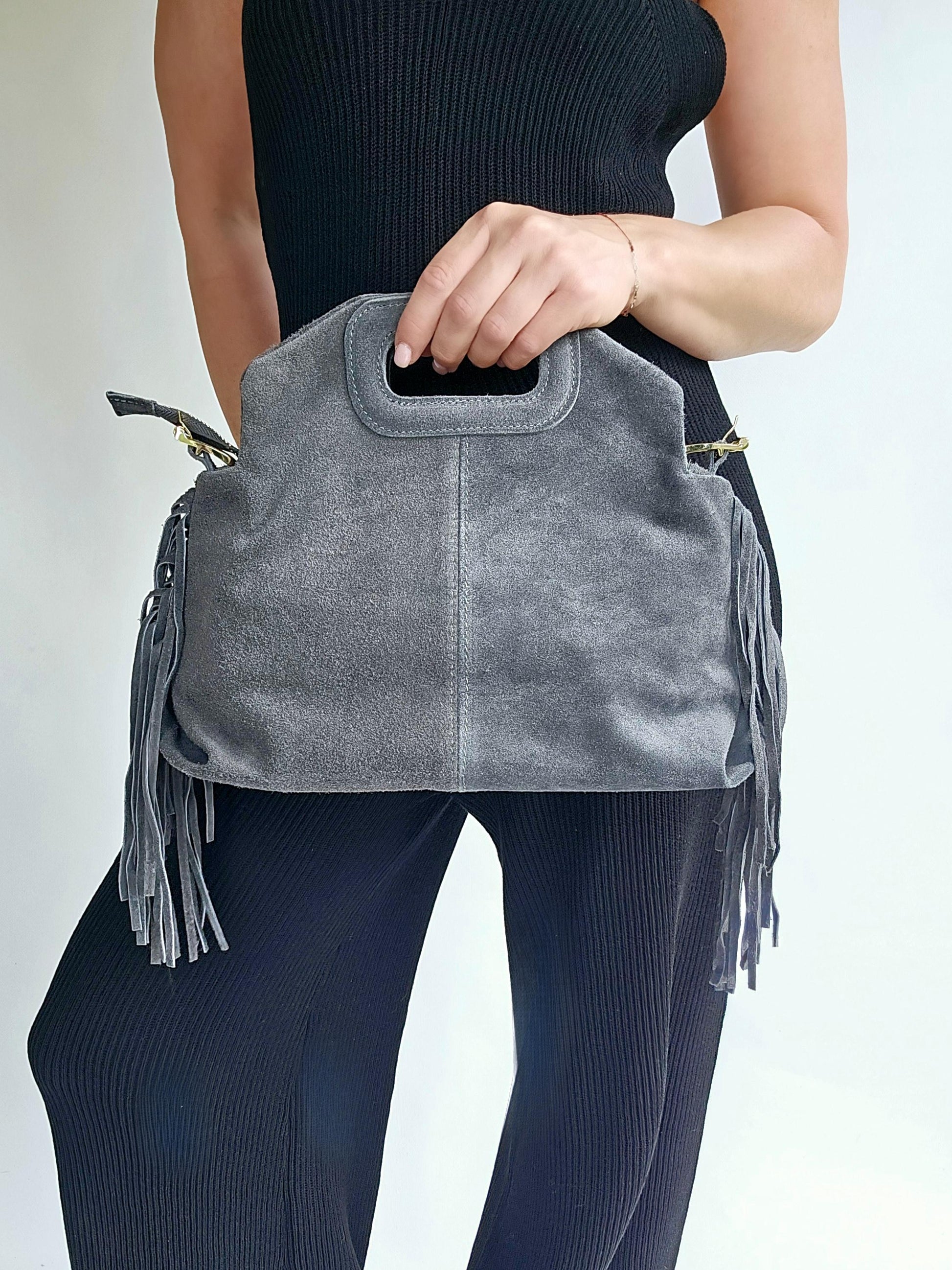 Un sac au style bohème chic qui conjugue praticité et élégance. Fabriqué en Italie dans un daim souple et raffiné, il se distingue par ses détails travaillés et sa grande polyvalence.