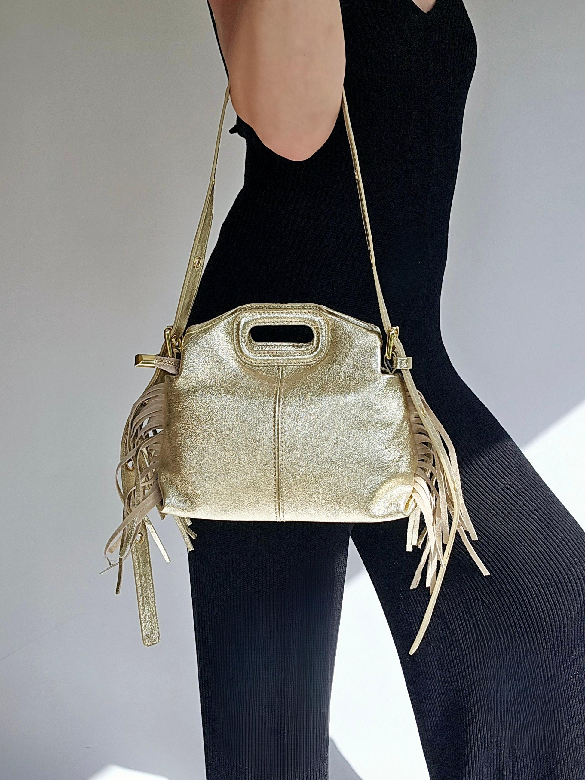 Sac frange bandouillère rivets Petit Doré