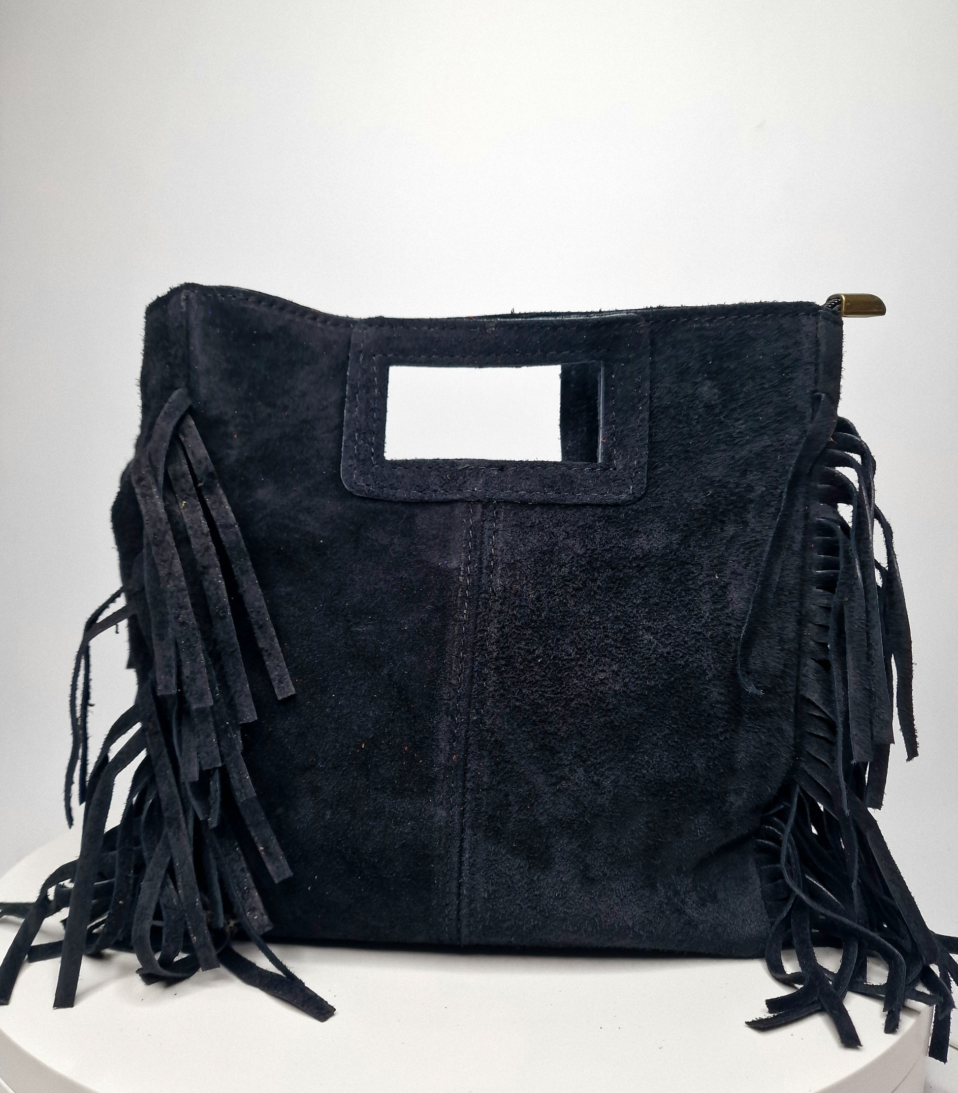 Black Suede Fringe Bag