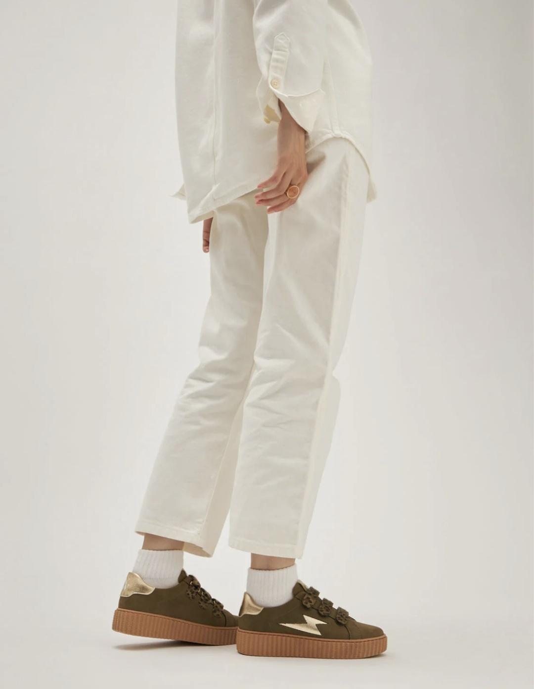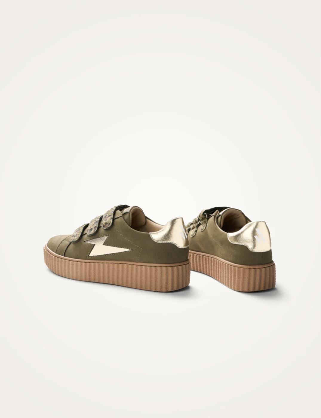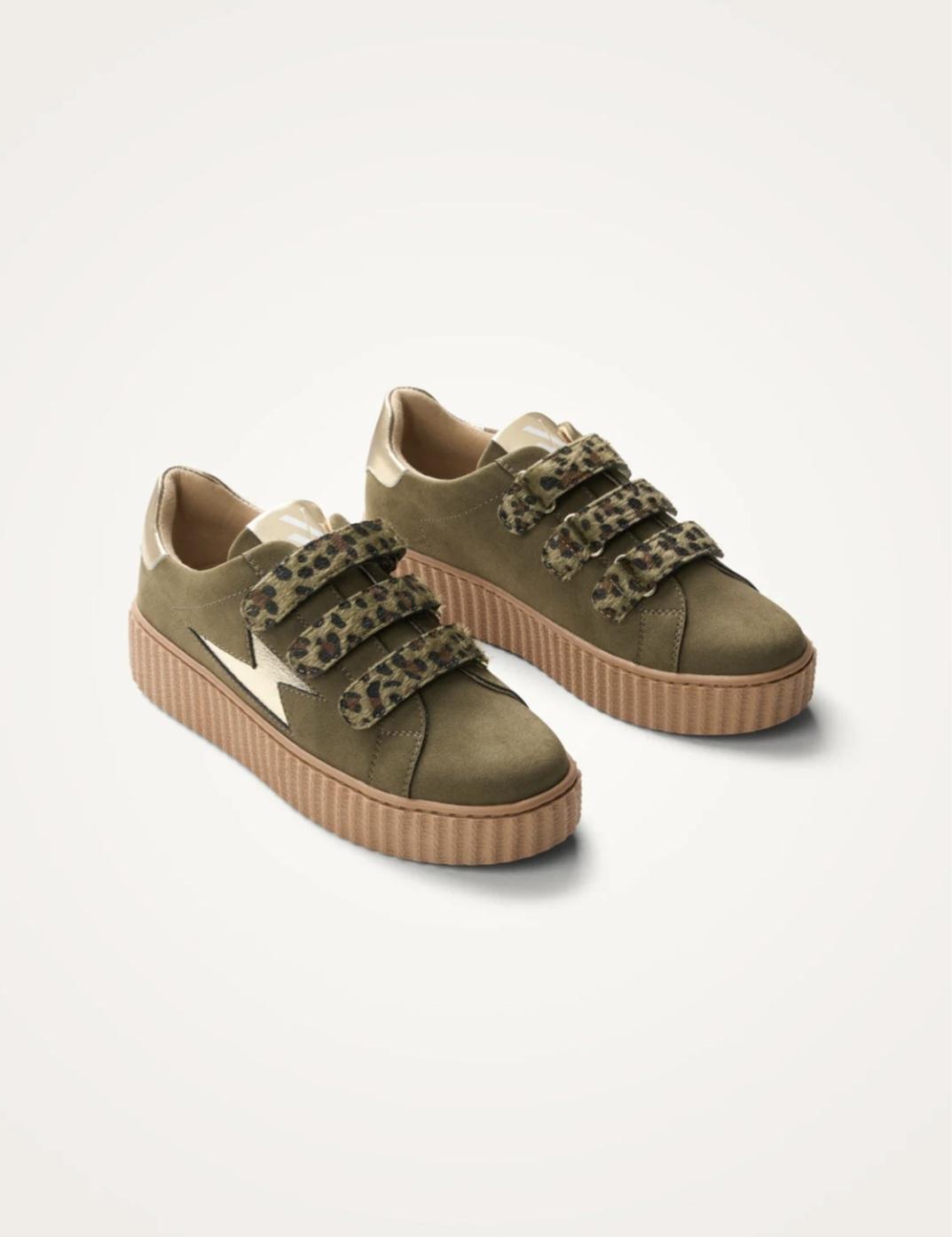 - Baskets en suédine effet peau de pêche vert kaki foncé