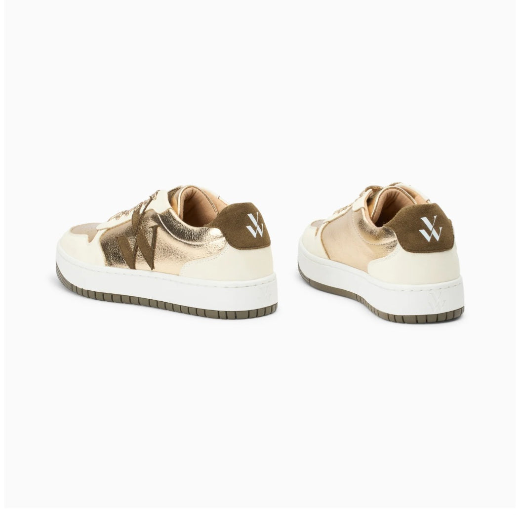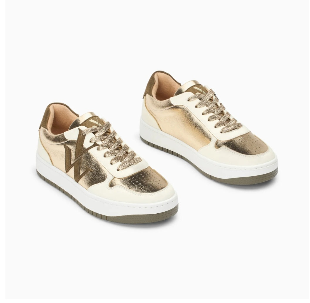 Vanessa Wu Cidem monogram gold and khaki sneakers