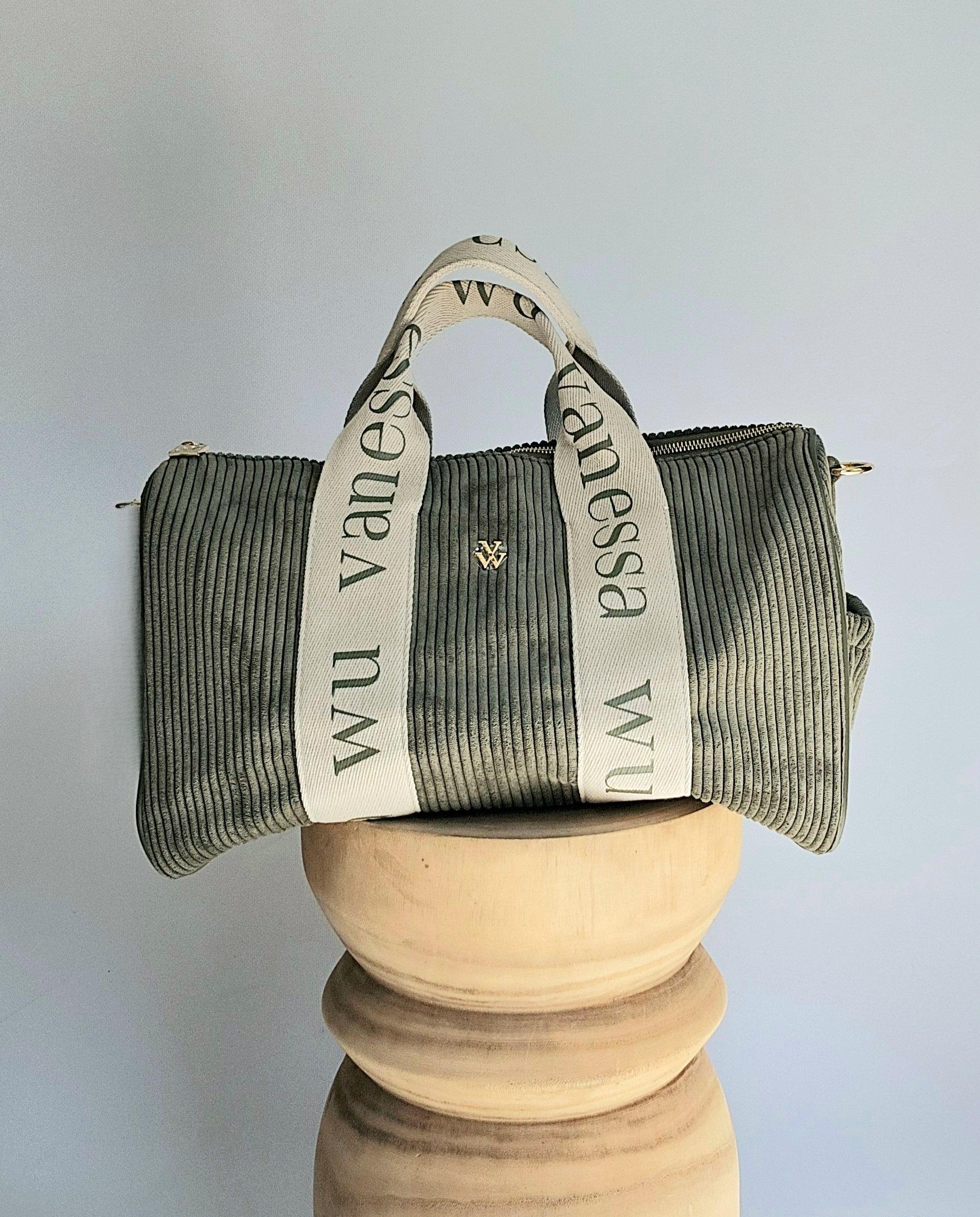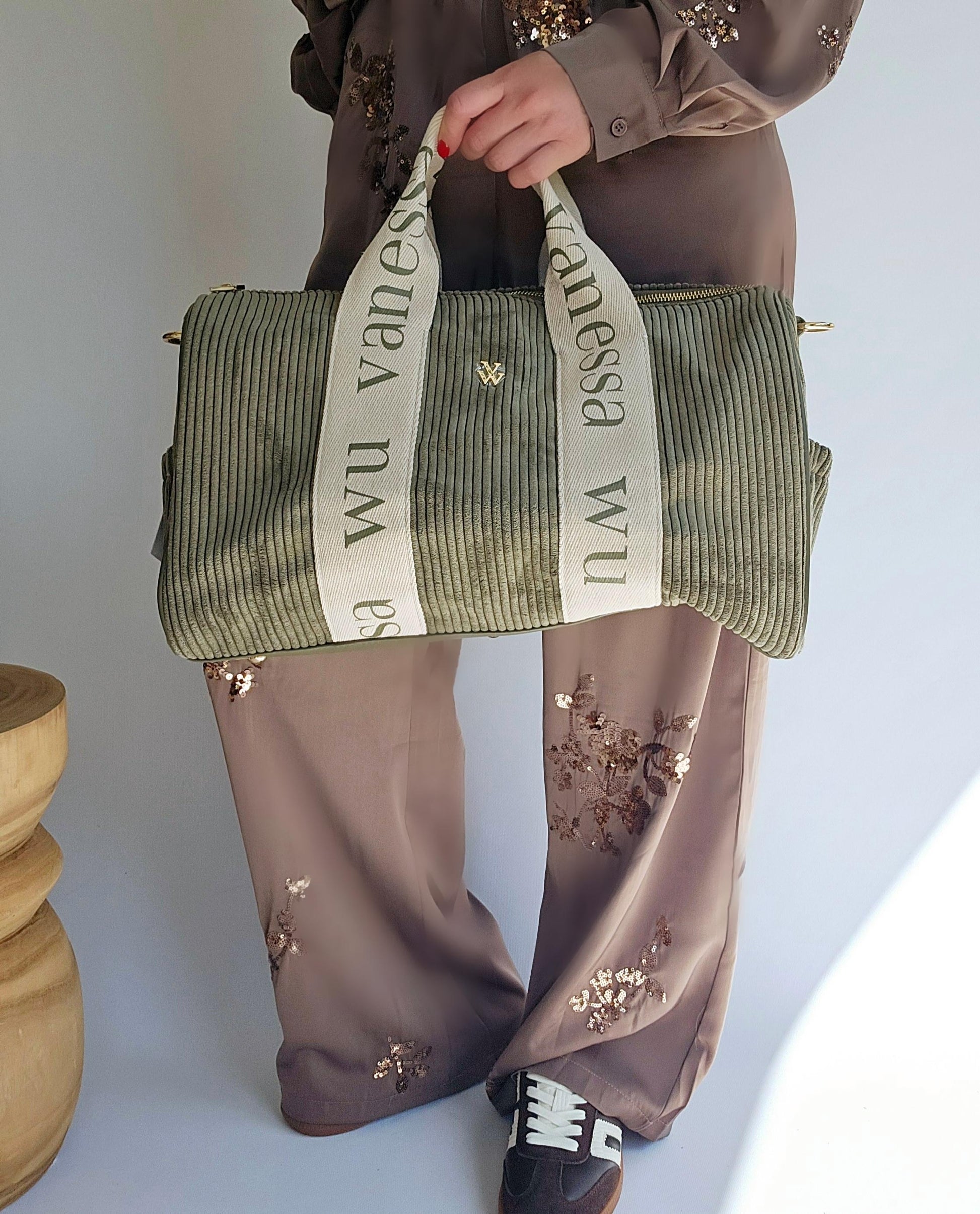Sac week-end Adrienne kaki en velours côtelé Vanessa Wu