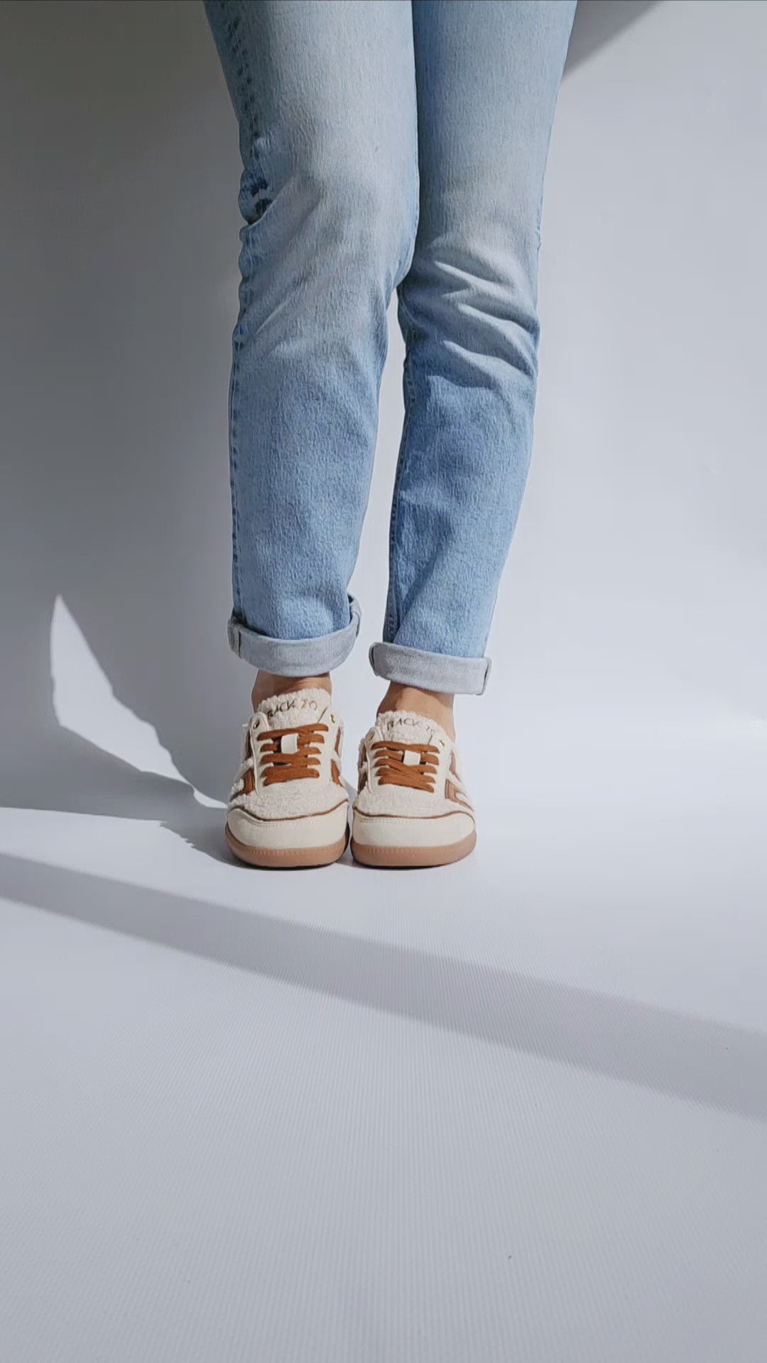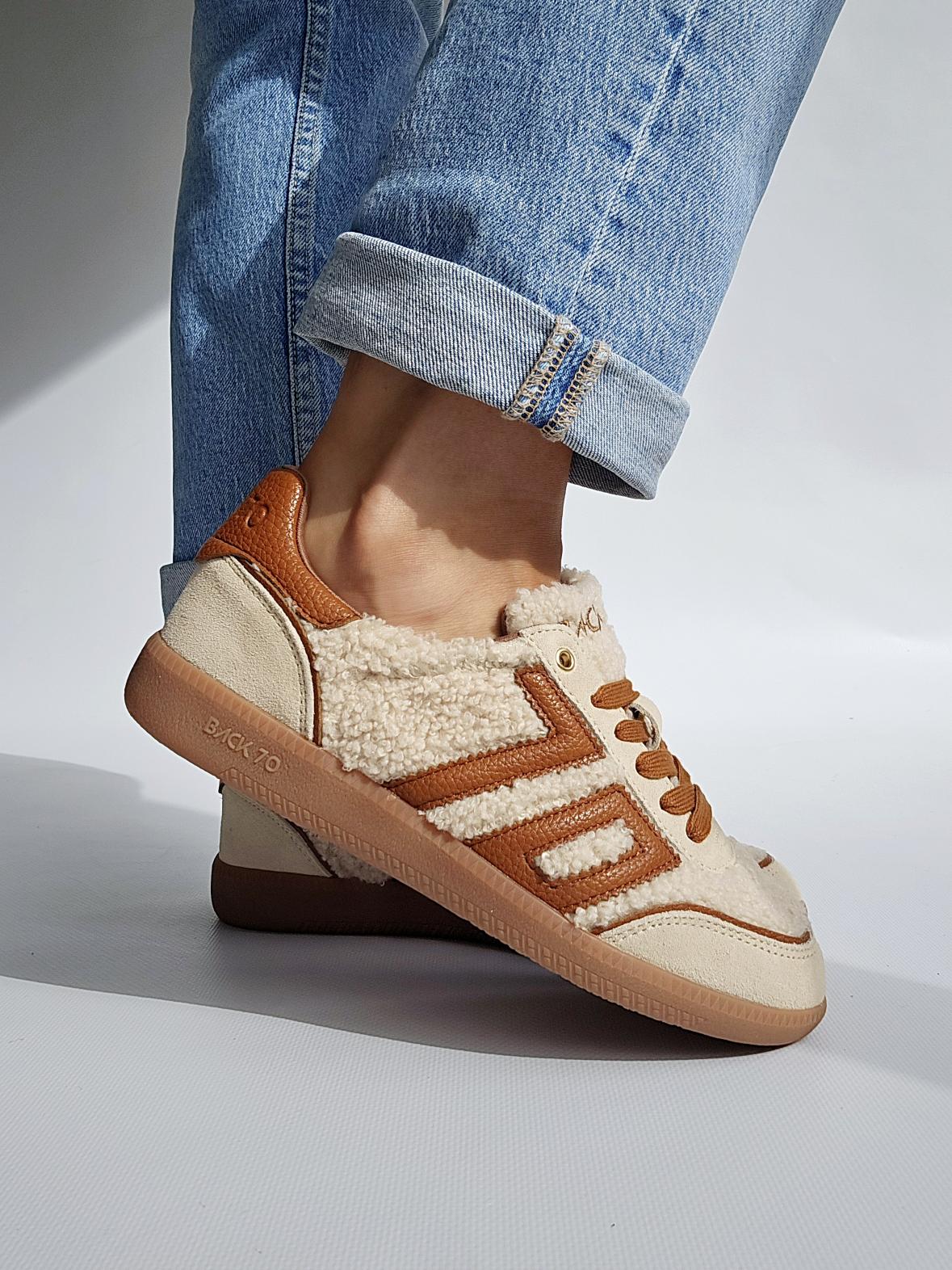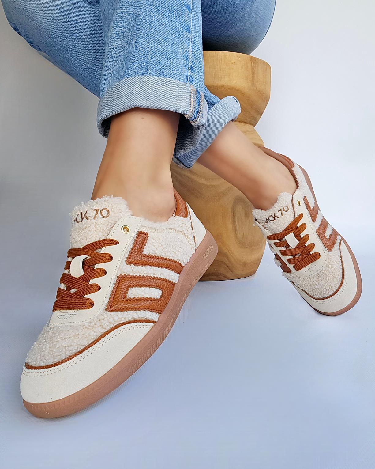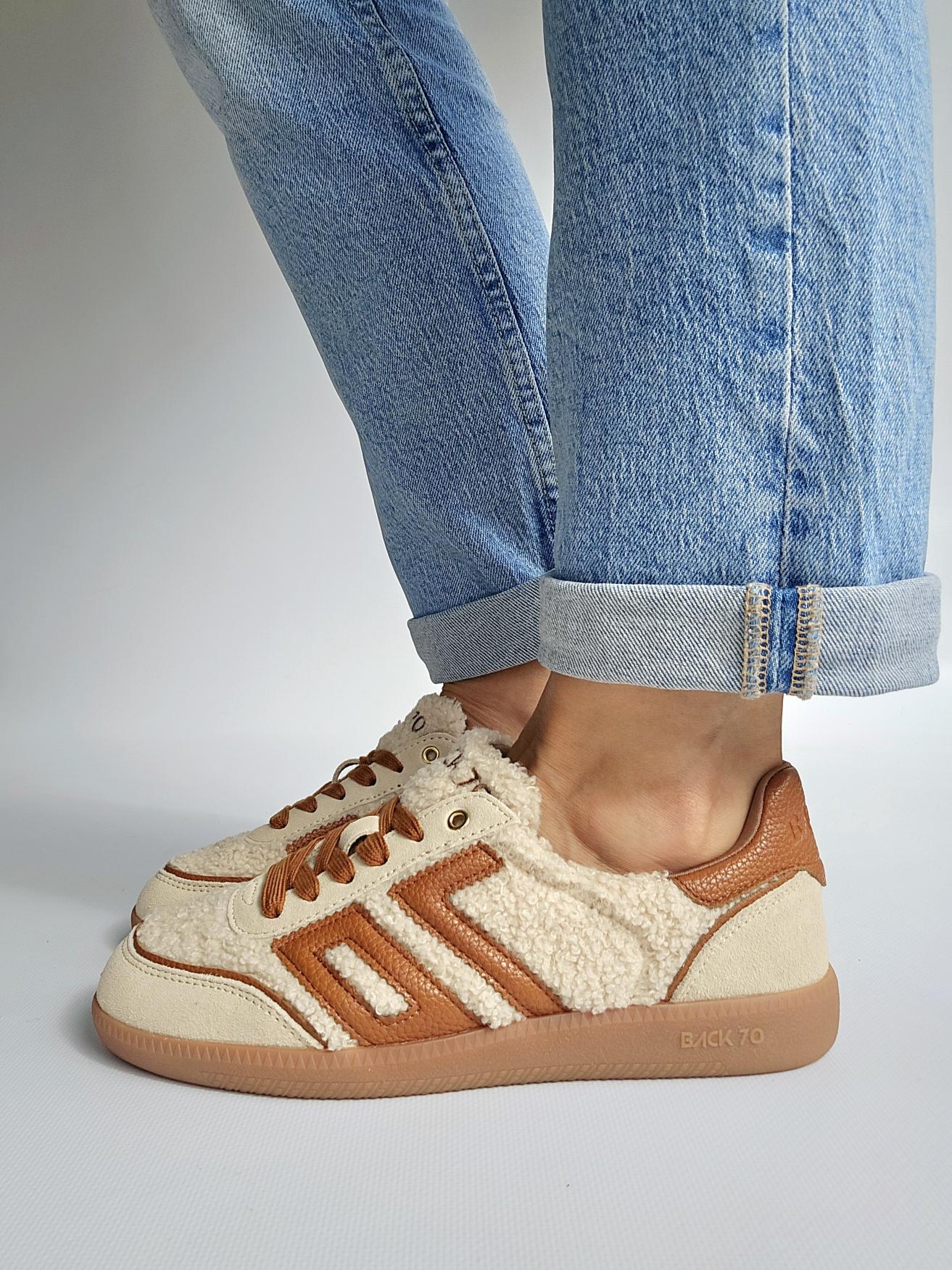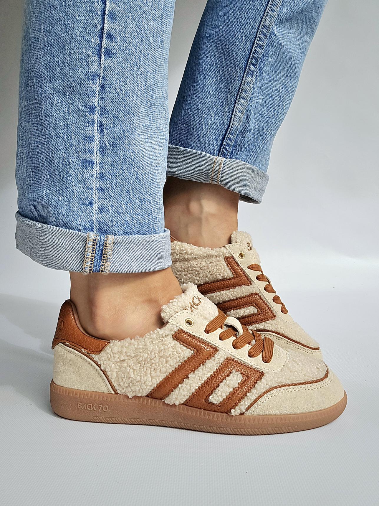 Baskets bouclette écru & camel – Back70 | Confort ultime & look texturé
