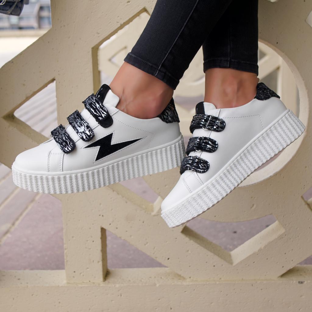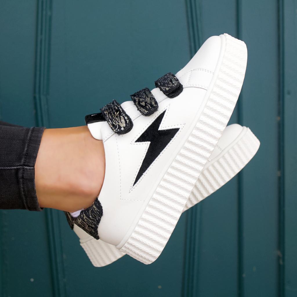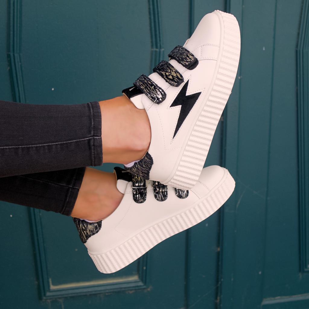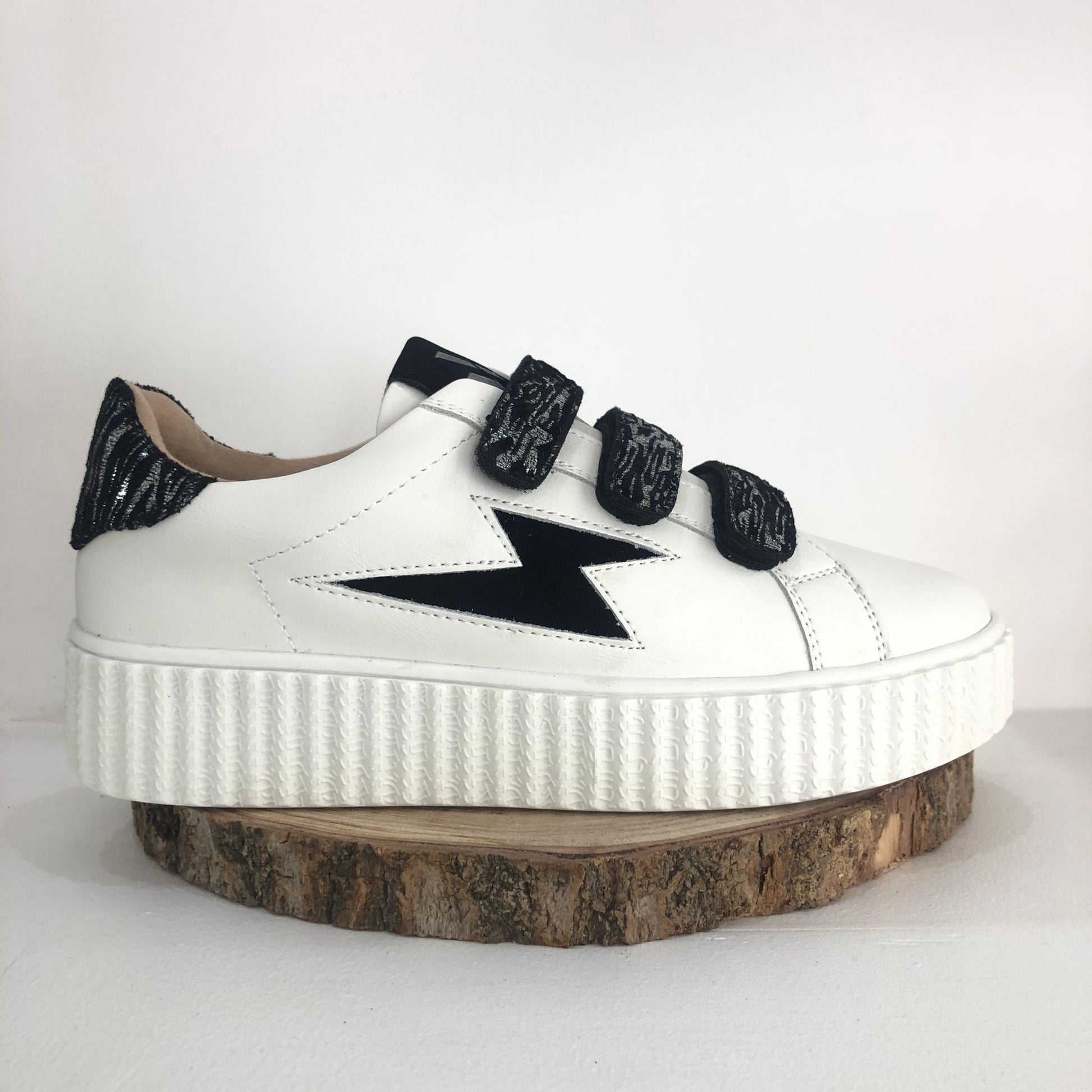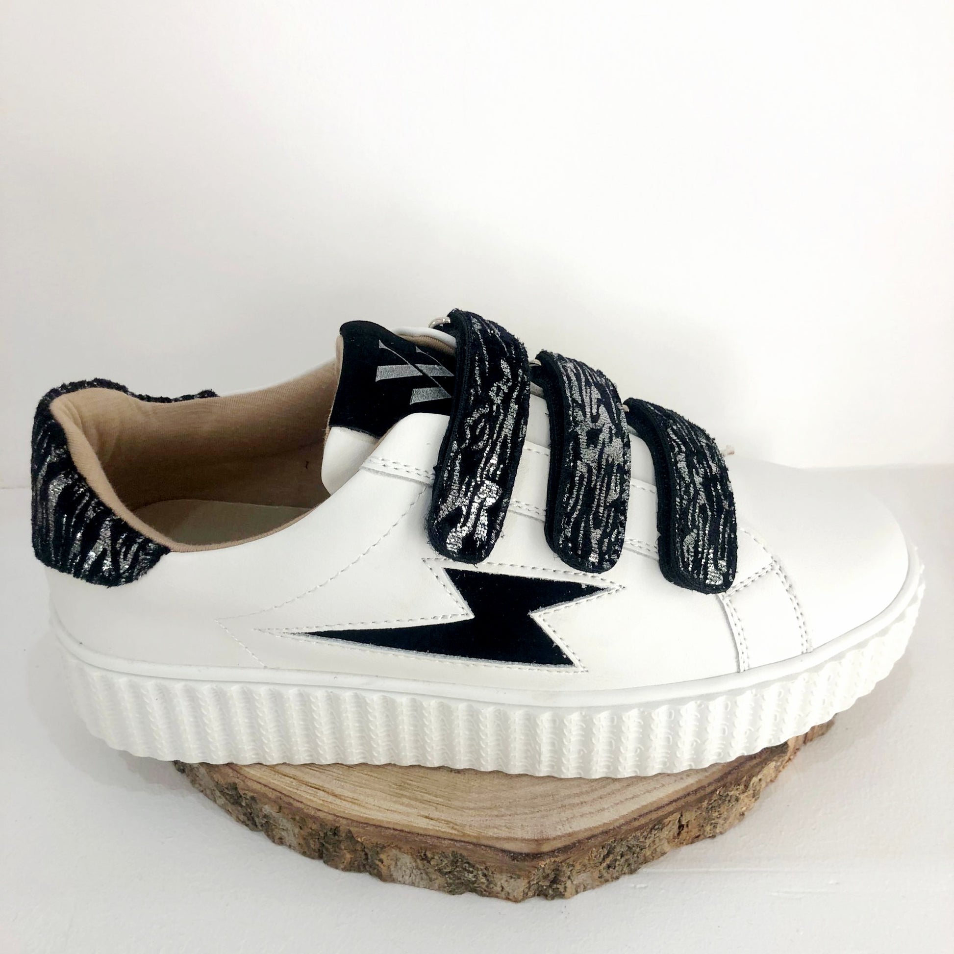 Ingrid Vanessa Wu white and black zebra print velcro lightning sneakers