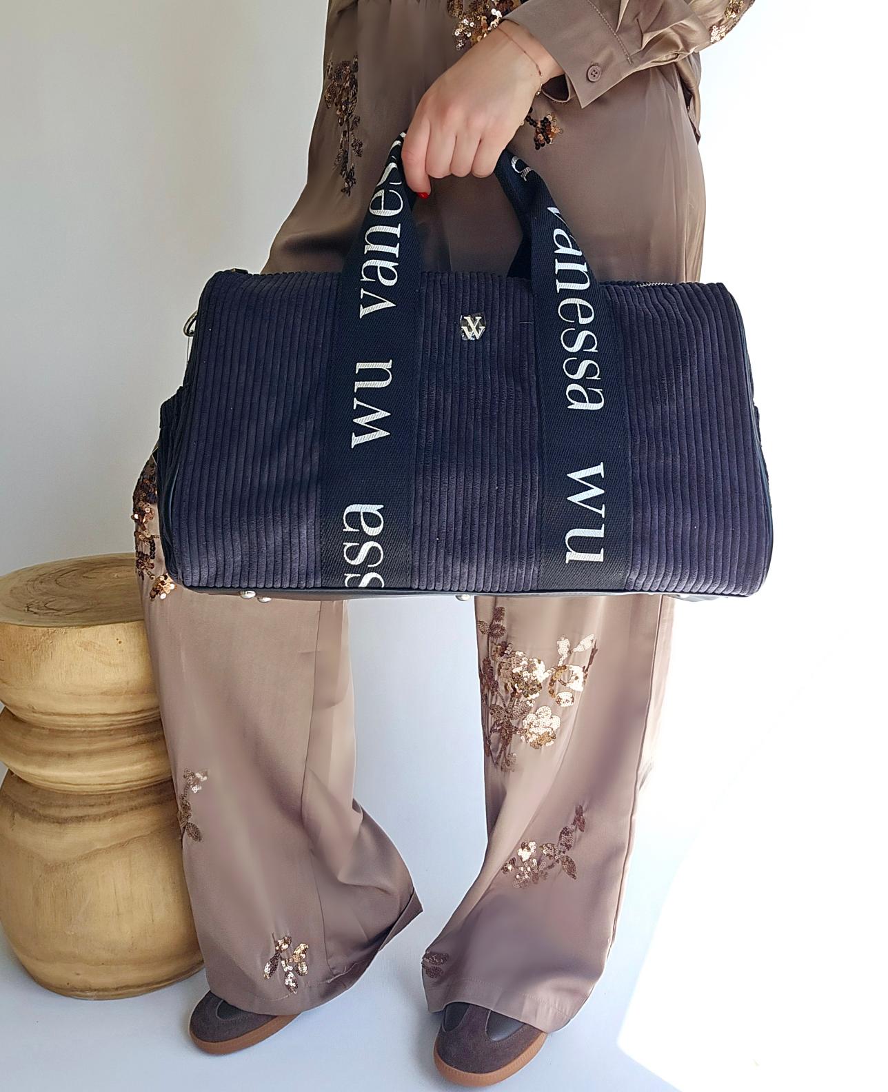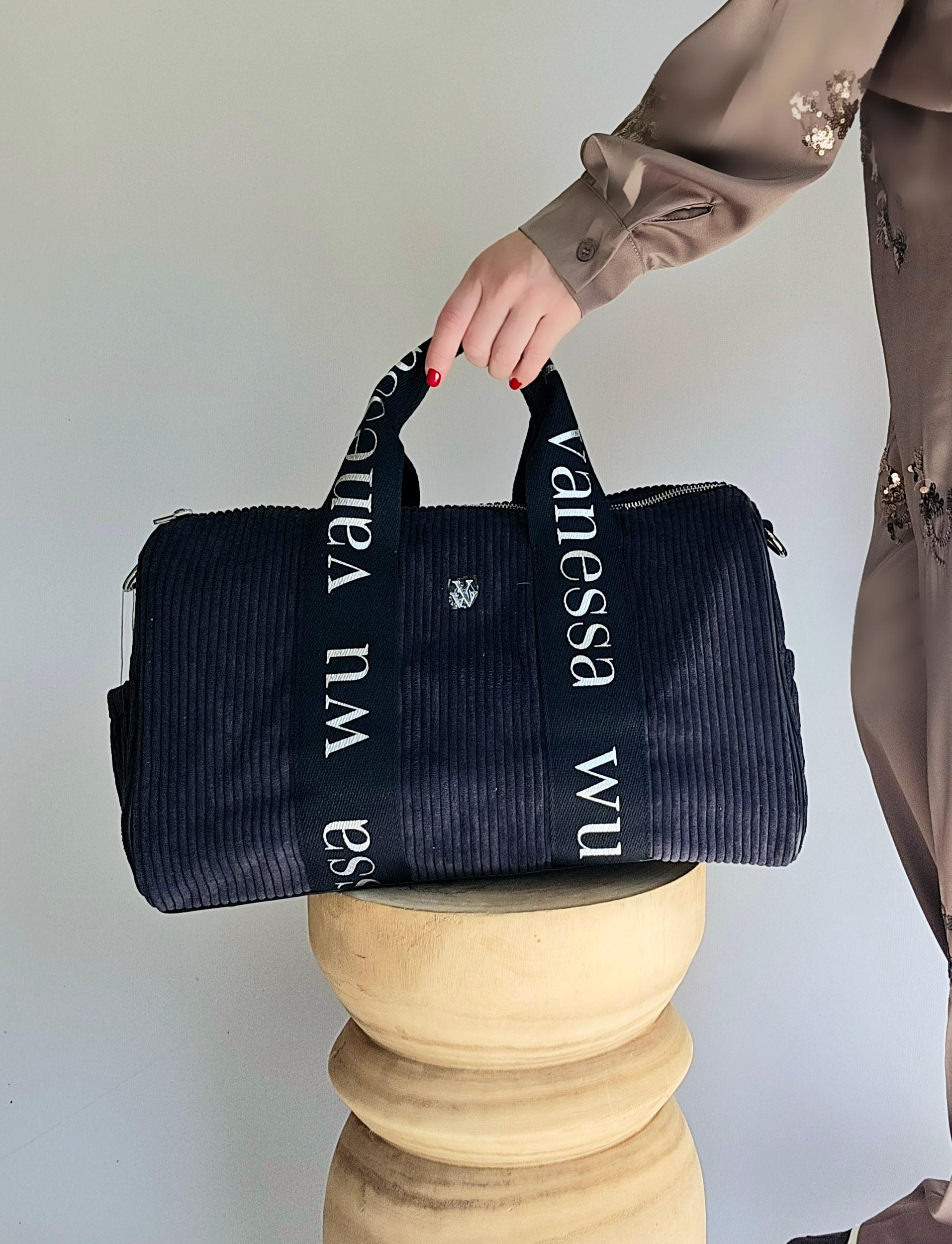 Sac week-end Adrienne Noir en velours côtelé Vanessa Wu
