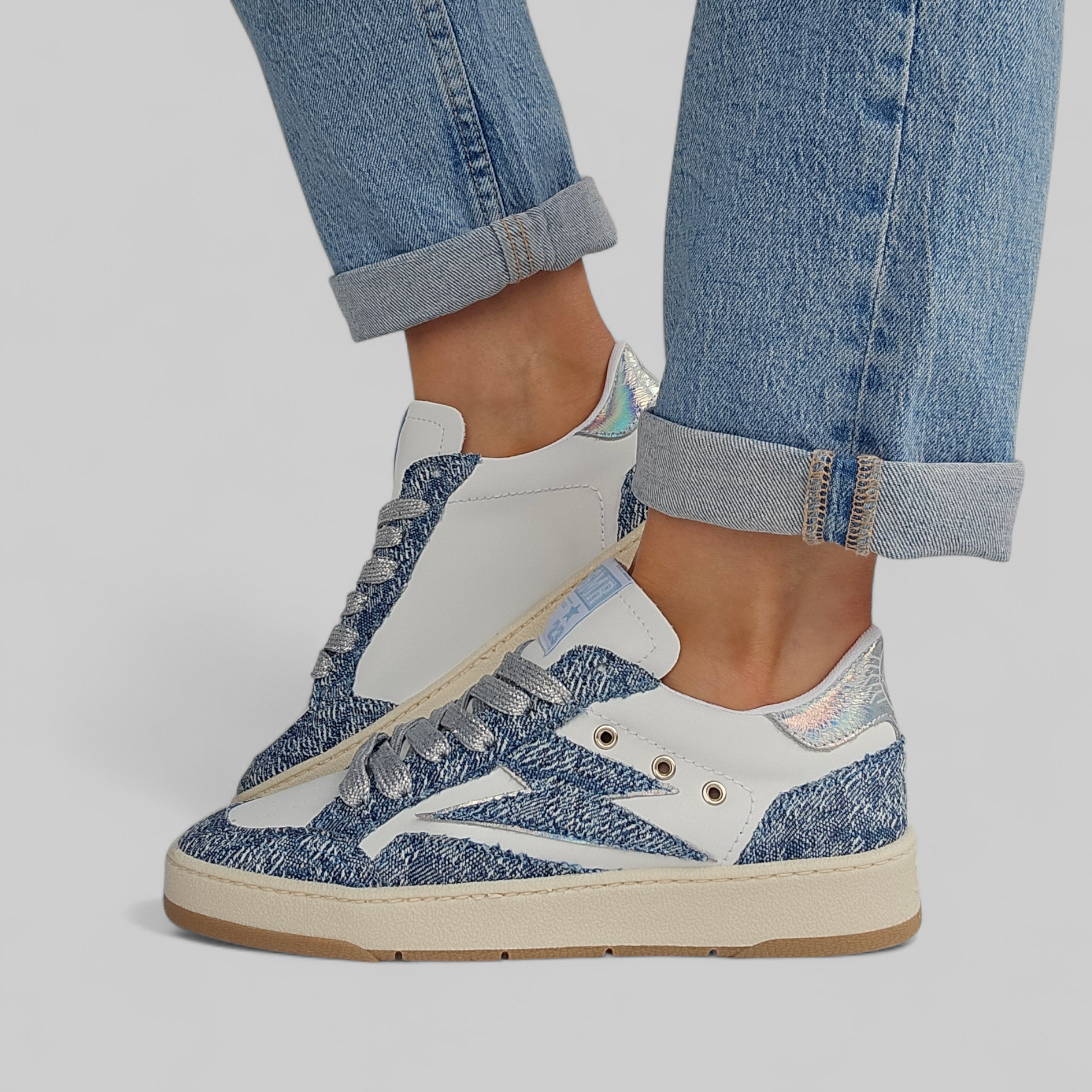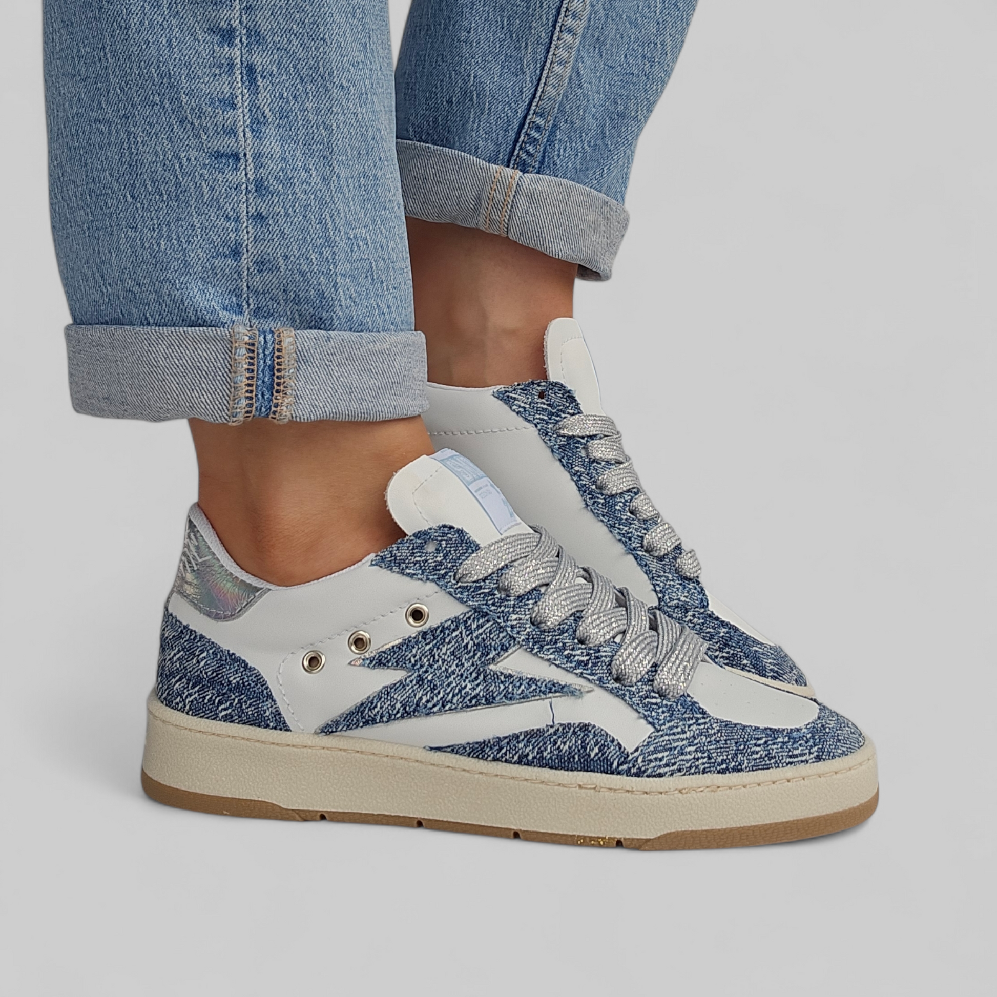 Baskets Semerdjian Dany D353 Blanc, Denim & Argent