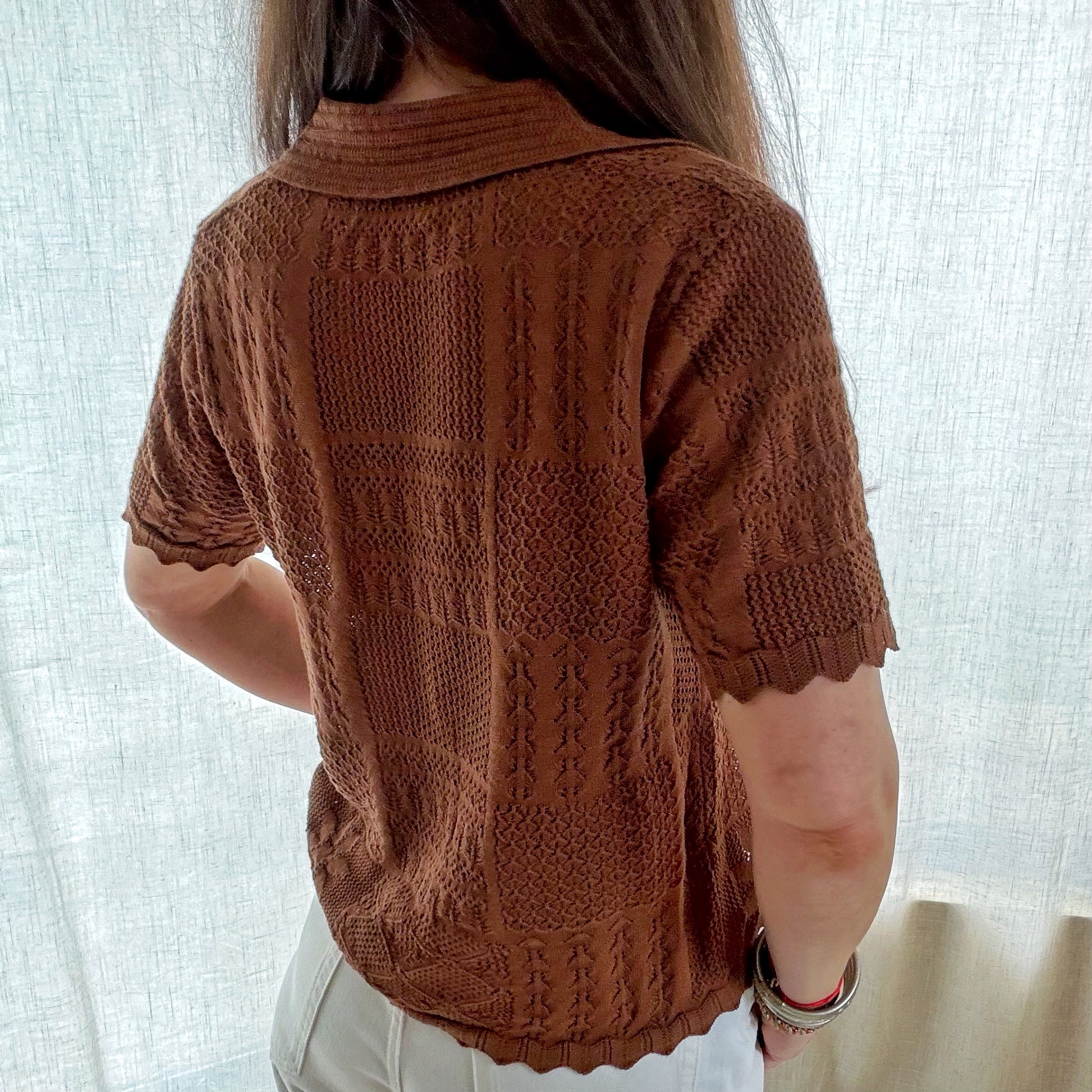 Je le porte ici avec un pantalon blanc pour un contraste lumineux que j’adore 🤍🤎