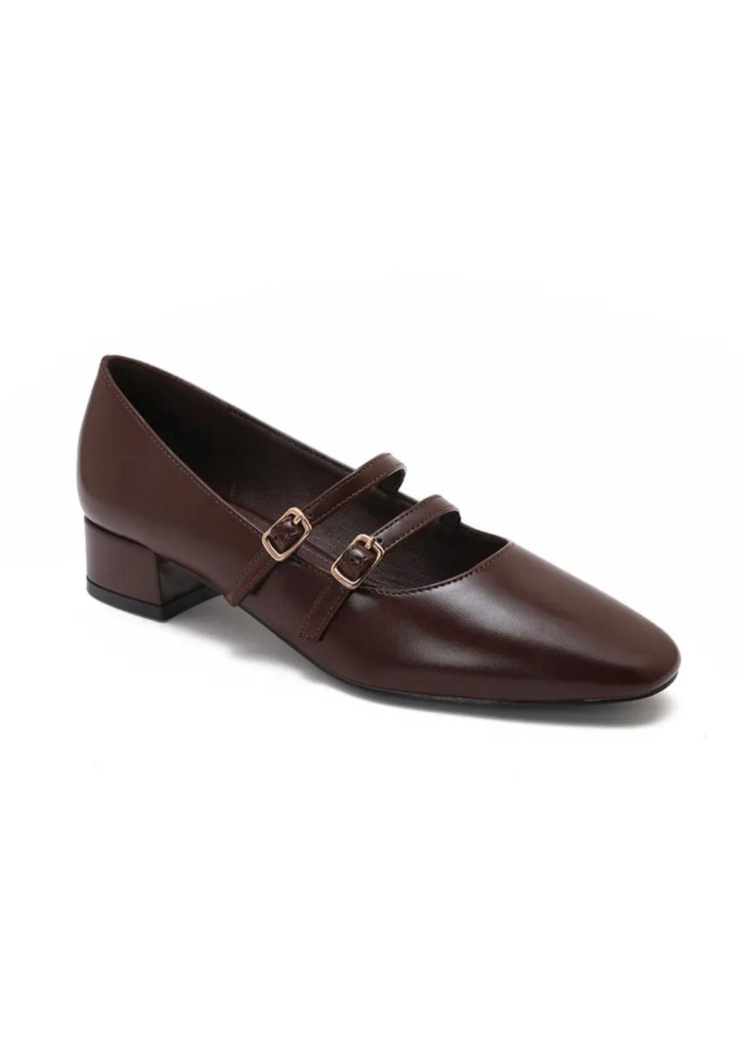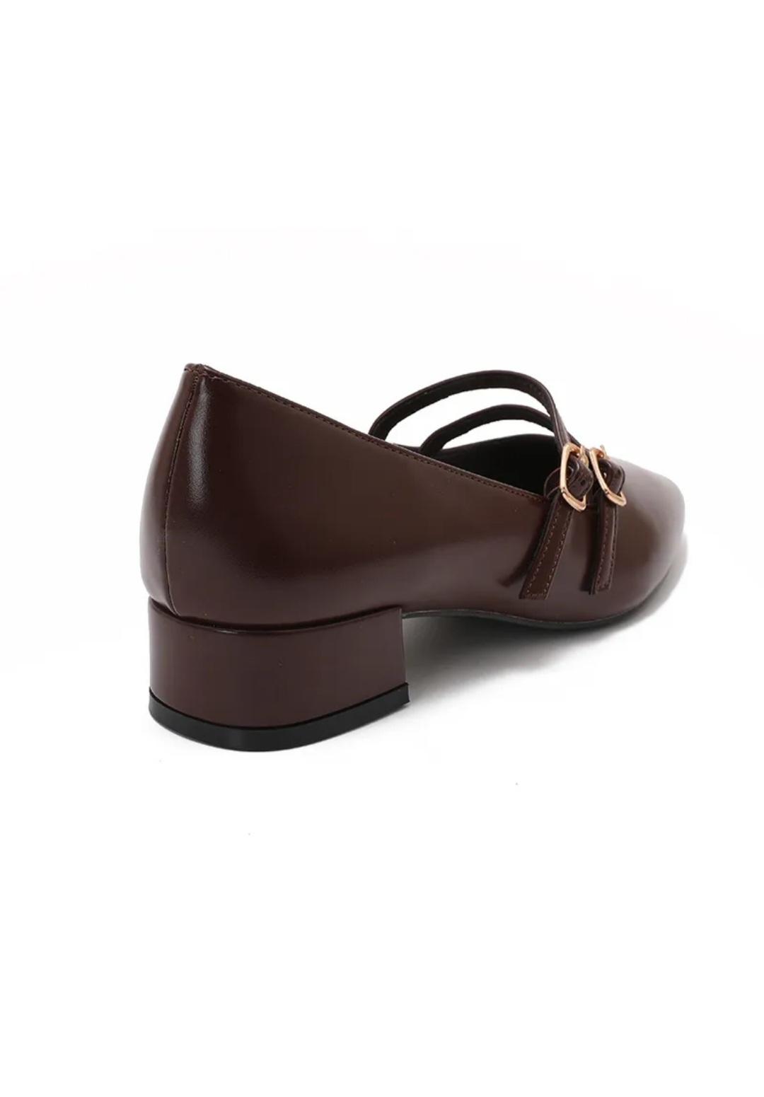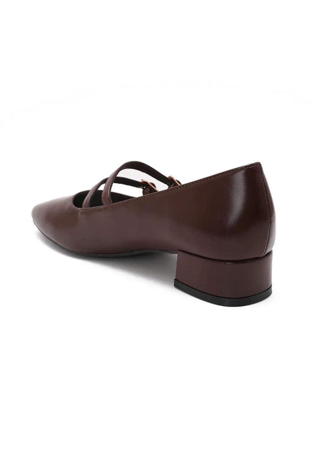 Escarpins Mary Jane à Double Bride Marron