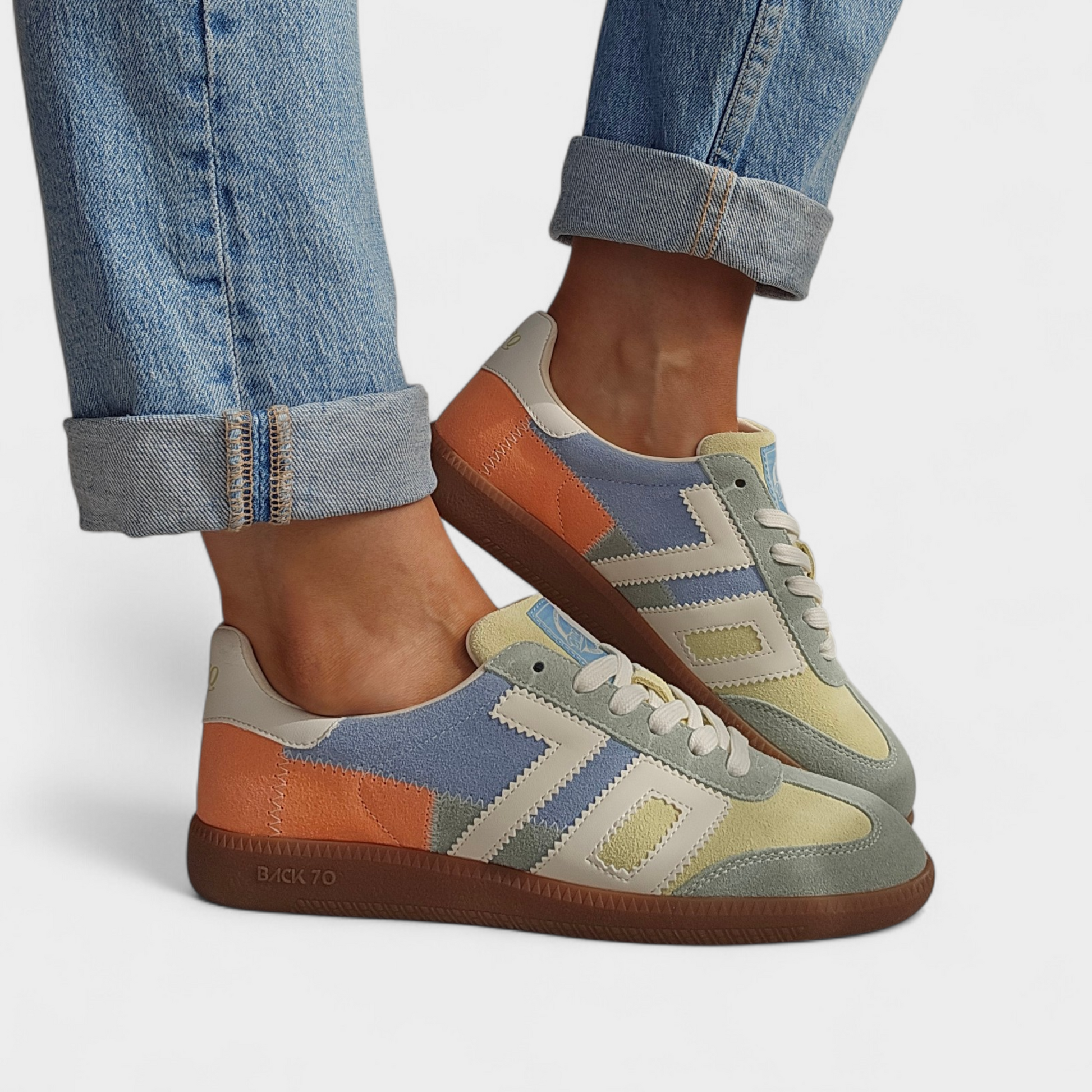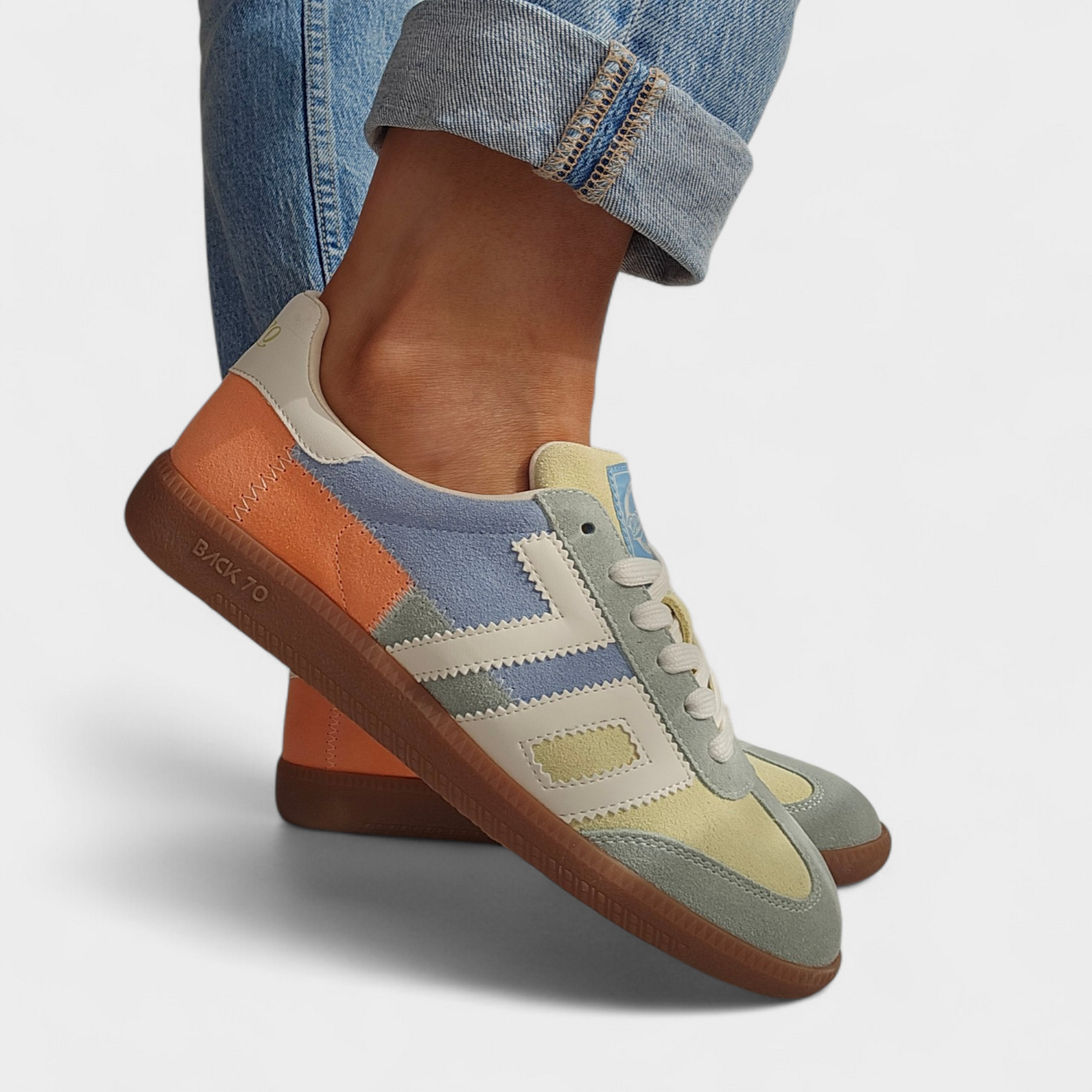 La Back 70 Ghost Patchwork Pastel revisite la sneaker rétro avec un joli jeu de matières et de couleurs.