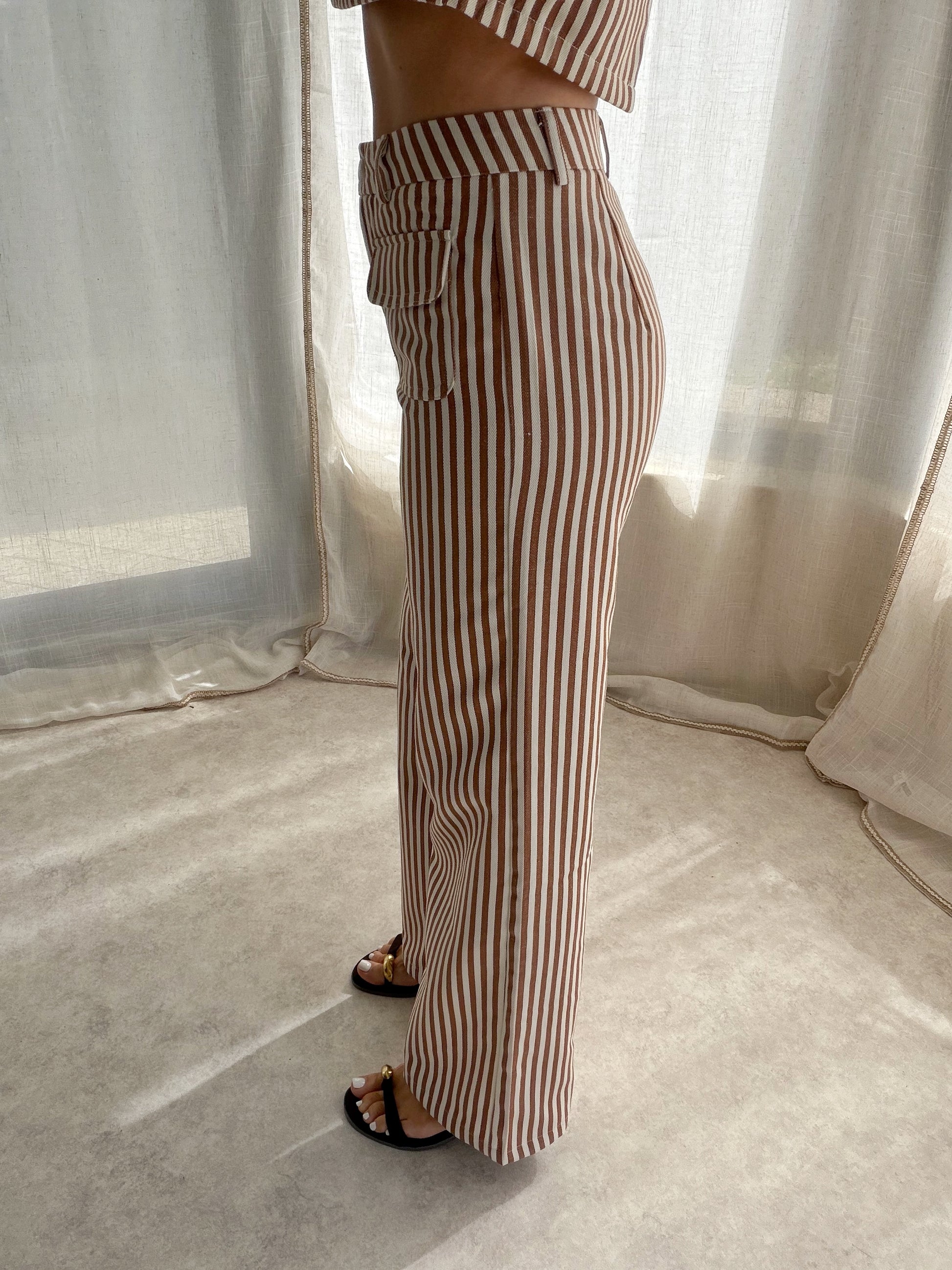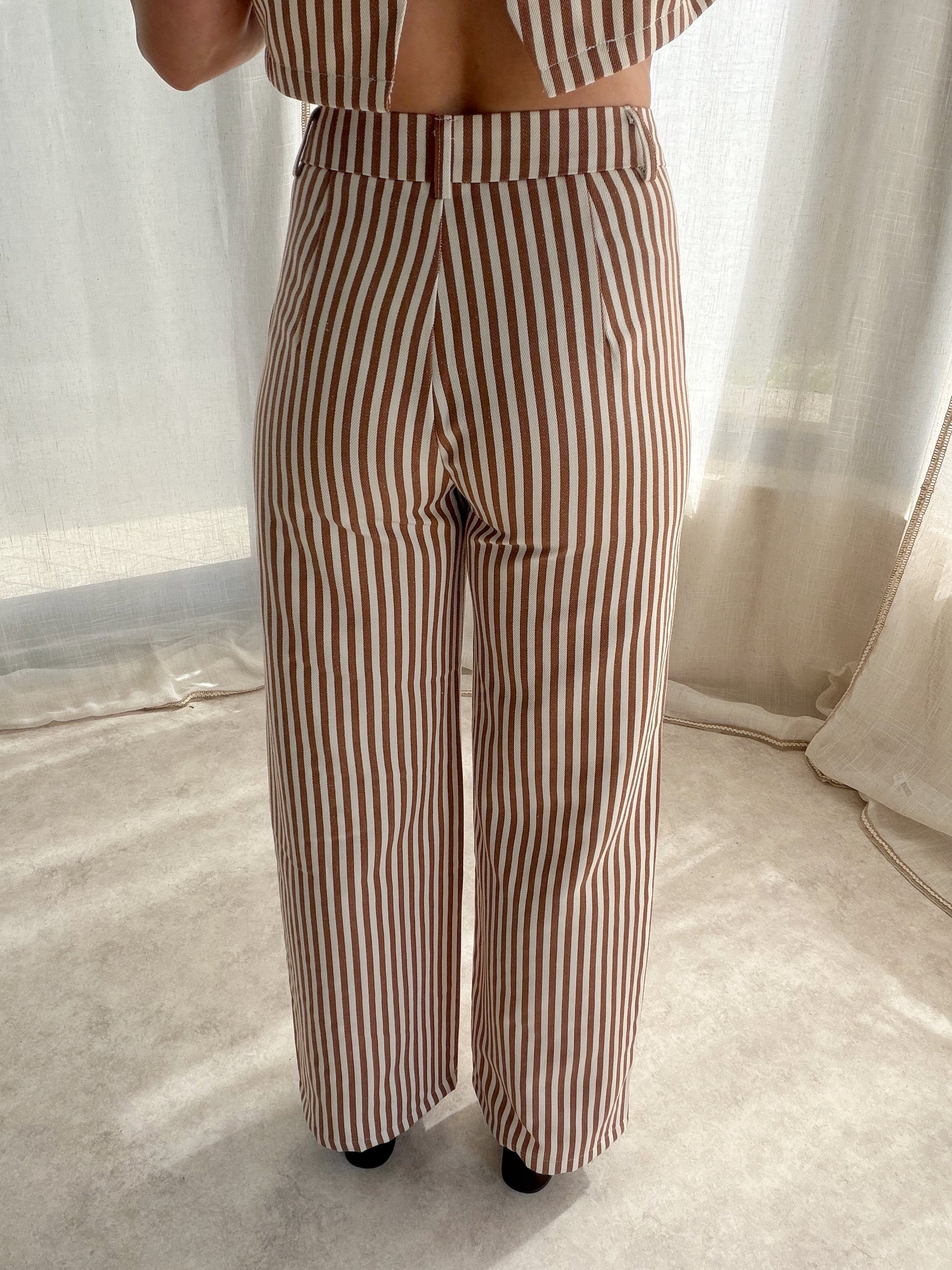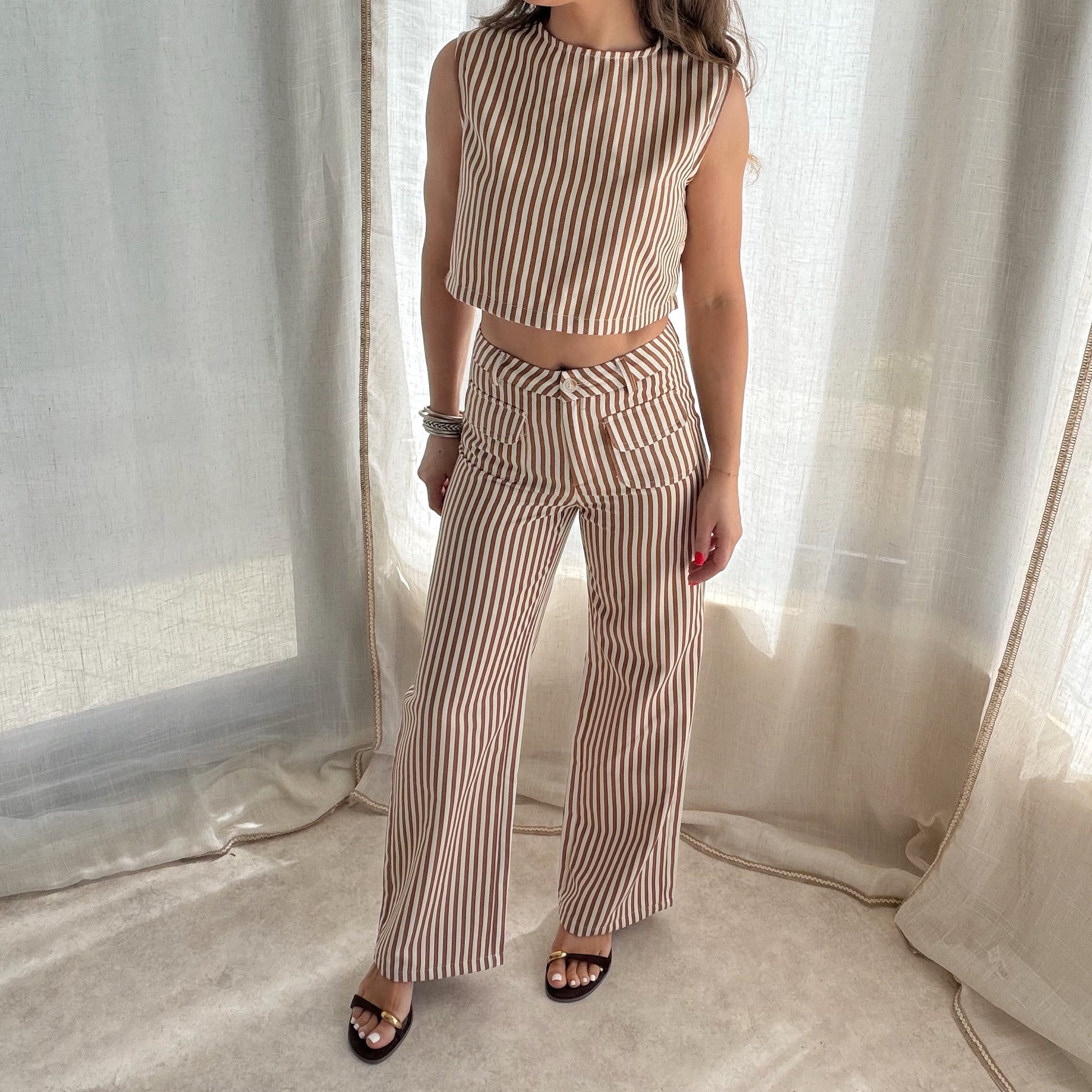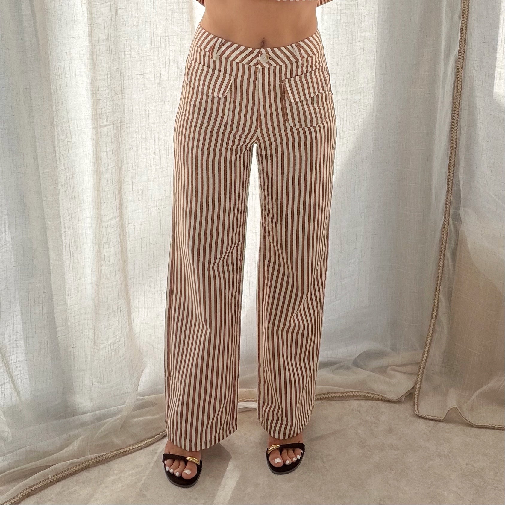 ✨ Pantalon fluide rayé – Taupe / terracotta