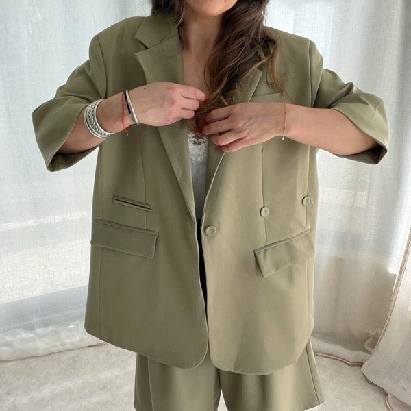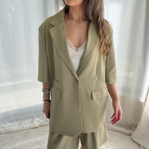 Blazer coupe tailleur dans une teinte kaki doux, à la fois chic et facile à porter.
